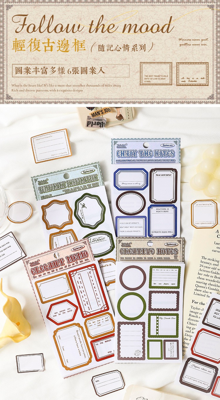 노트 무드 접착 테두리 스티커 DIY 핸드북 일기 스티커 국경 간 메시지 스티커 메모 스탬프 테두리스토어 가기