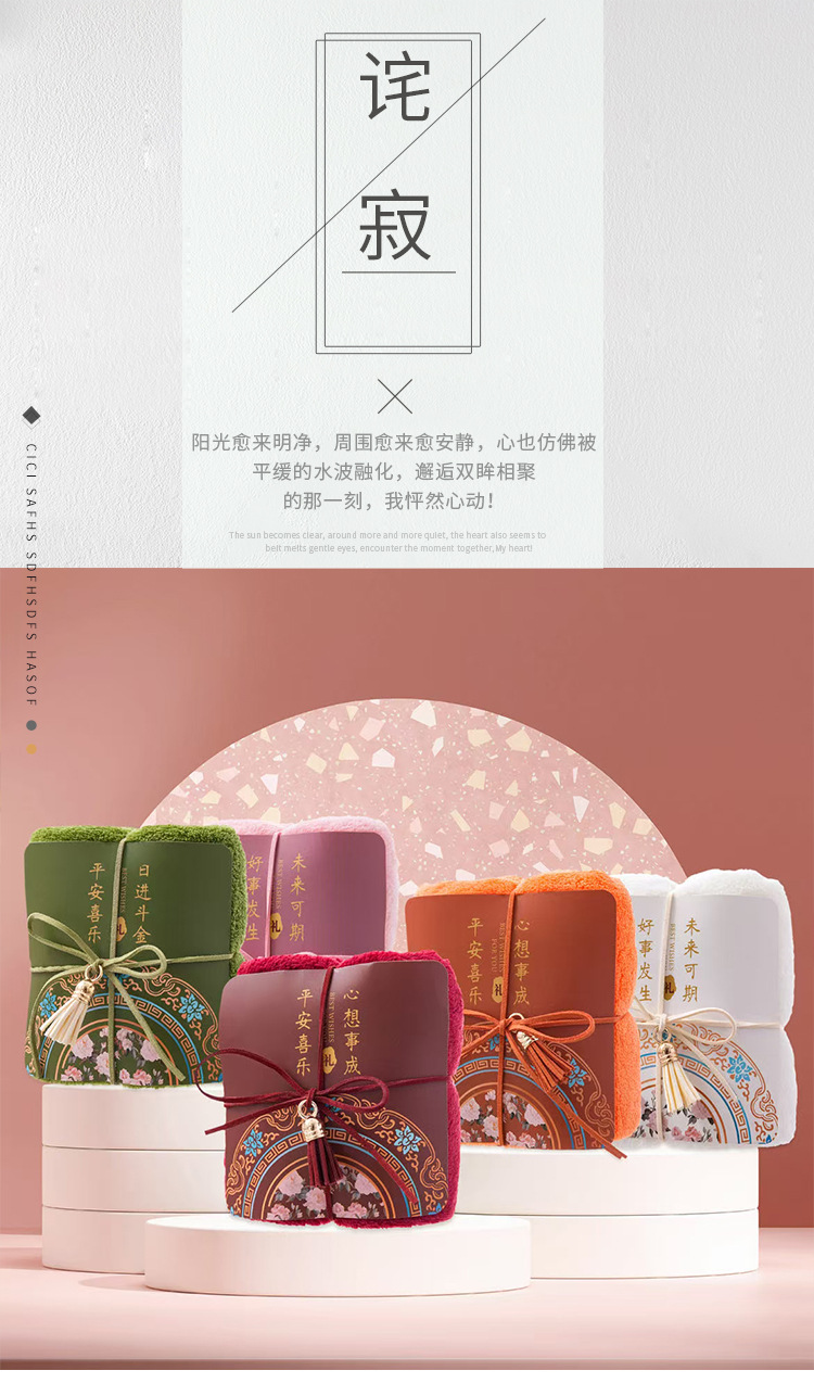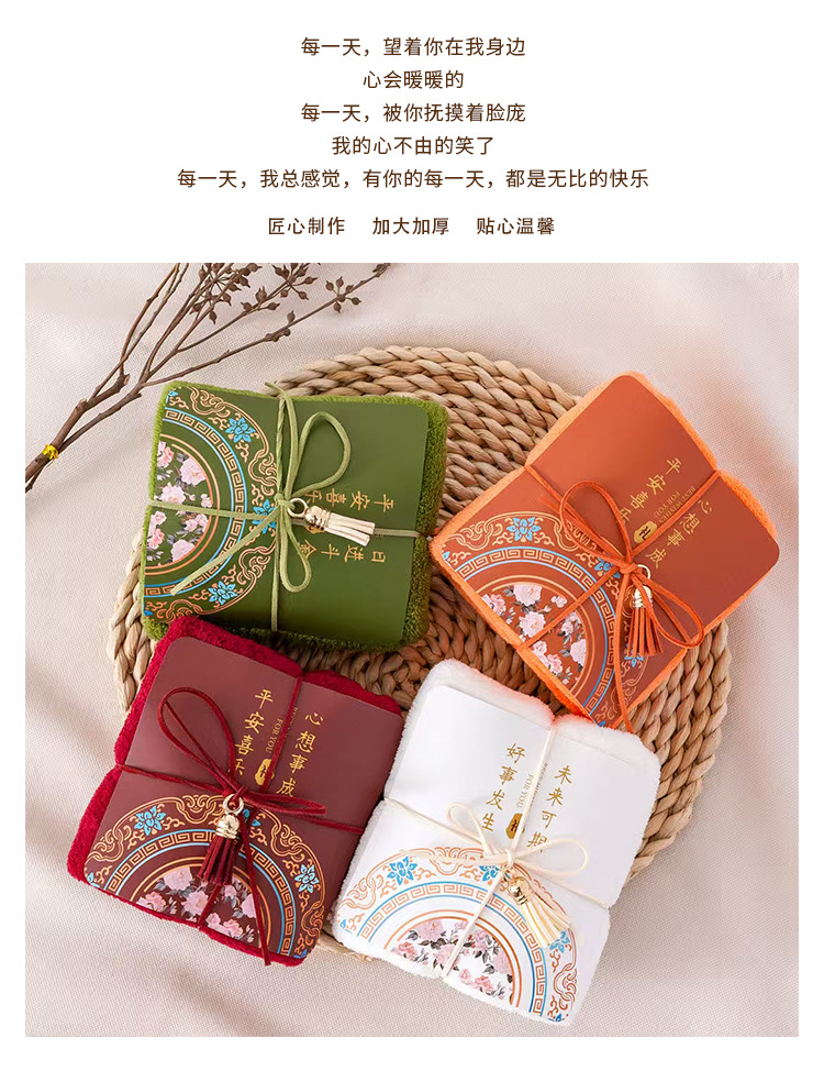 공장 직접 판매 산호 벨벳 기념품 수건, 고급 생일 및 명절 선물, 중국 스타일 수건 기념품스토어 가기
