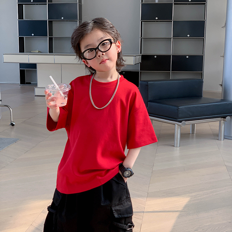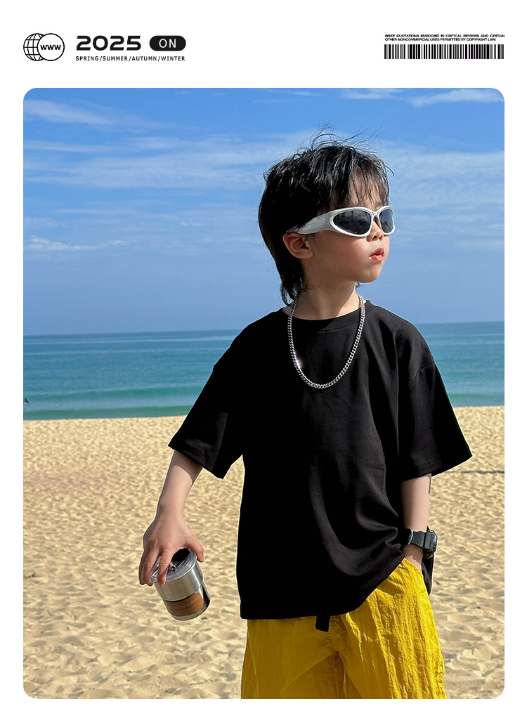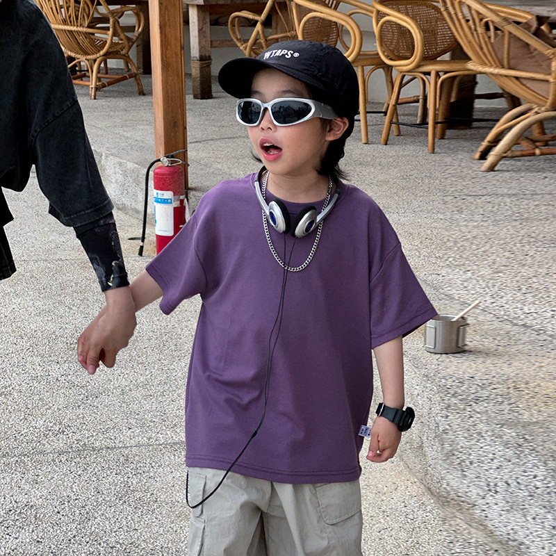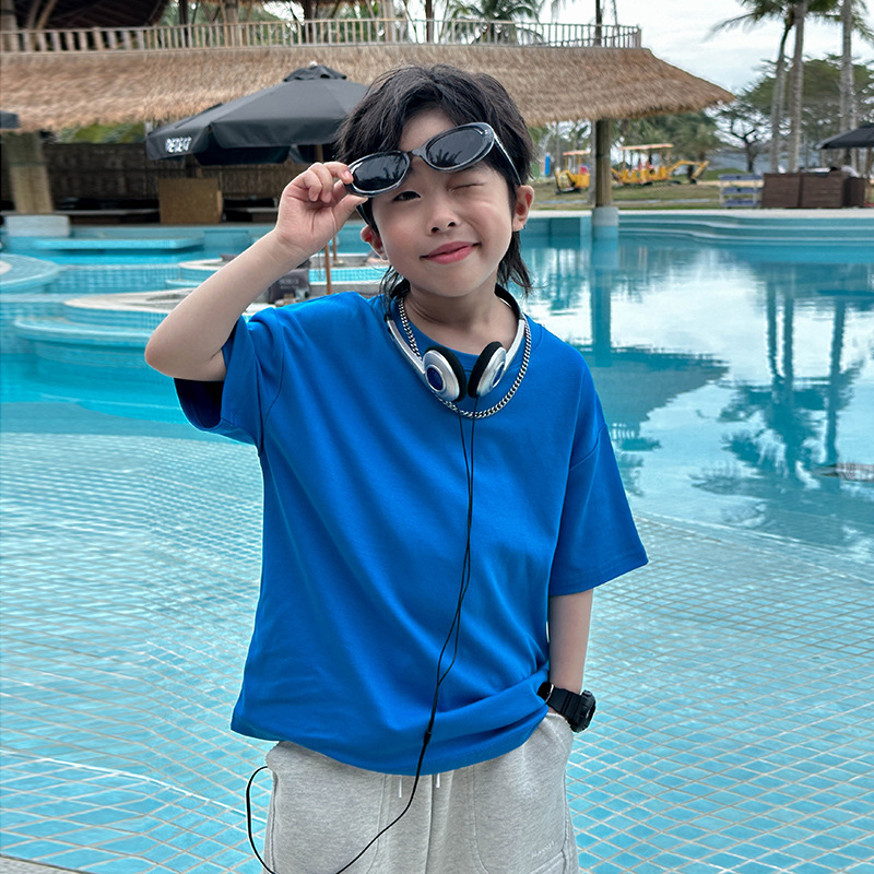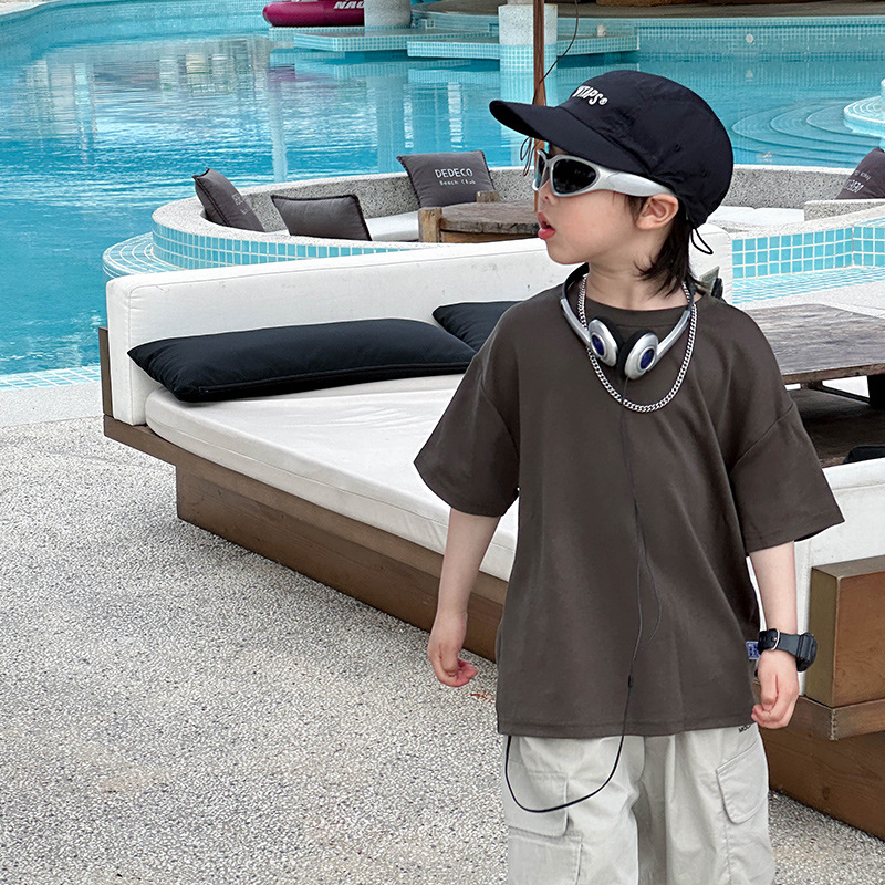 어린이 패션 티셔츠 2025 여름 새로운 도착 소년 한국 스타일 잘 생긴 순면 탑 어린이 느슨한 여름 패션스토어 가기
