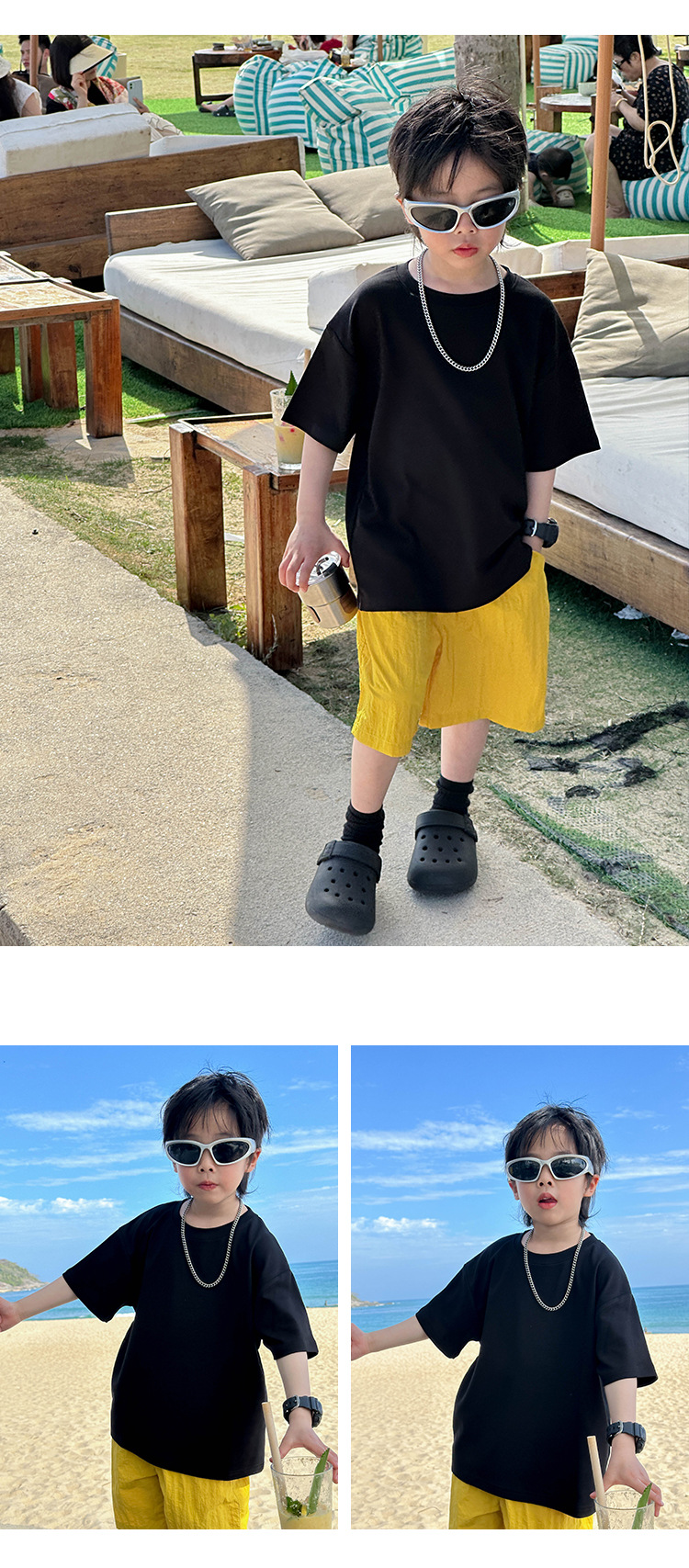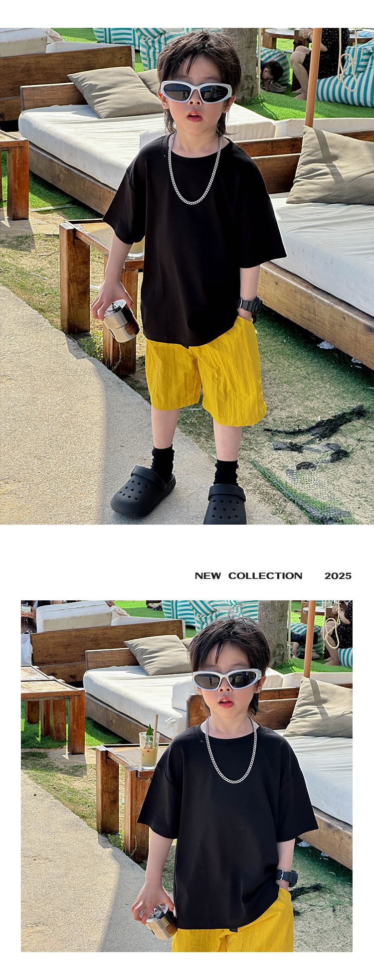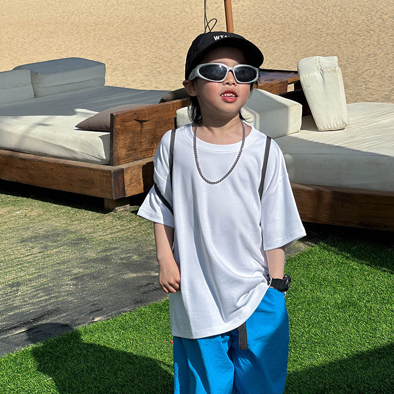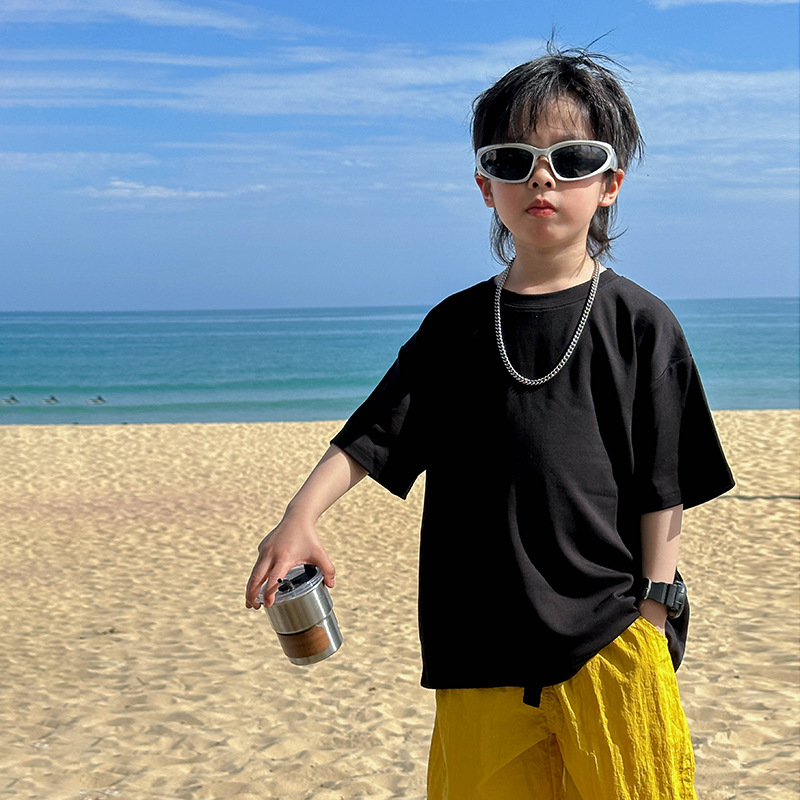 어린이 패션 티셔츠 2025 여름 새로운 도착 소년 한국 스타일 잘 생긴 순면 탑 어린이 느슨한 여름 패션스토어 가기