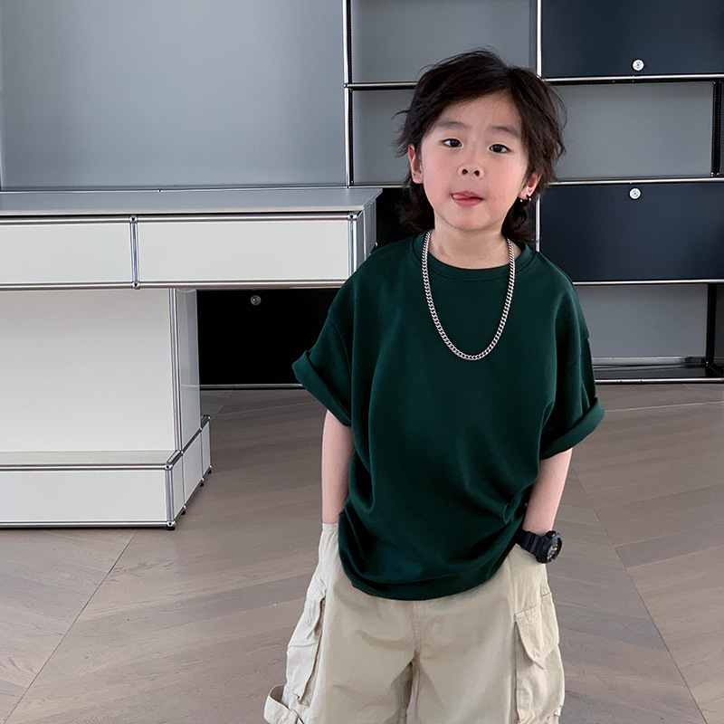 어린이 패션 티셔츠 2025 여름 새로운 도착 소년 한국 스타일 잘 생긴 순면 탑 어린이 느슨한 여름 패션