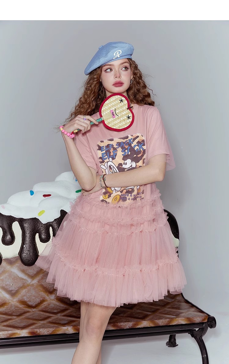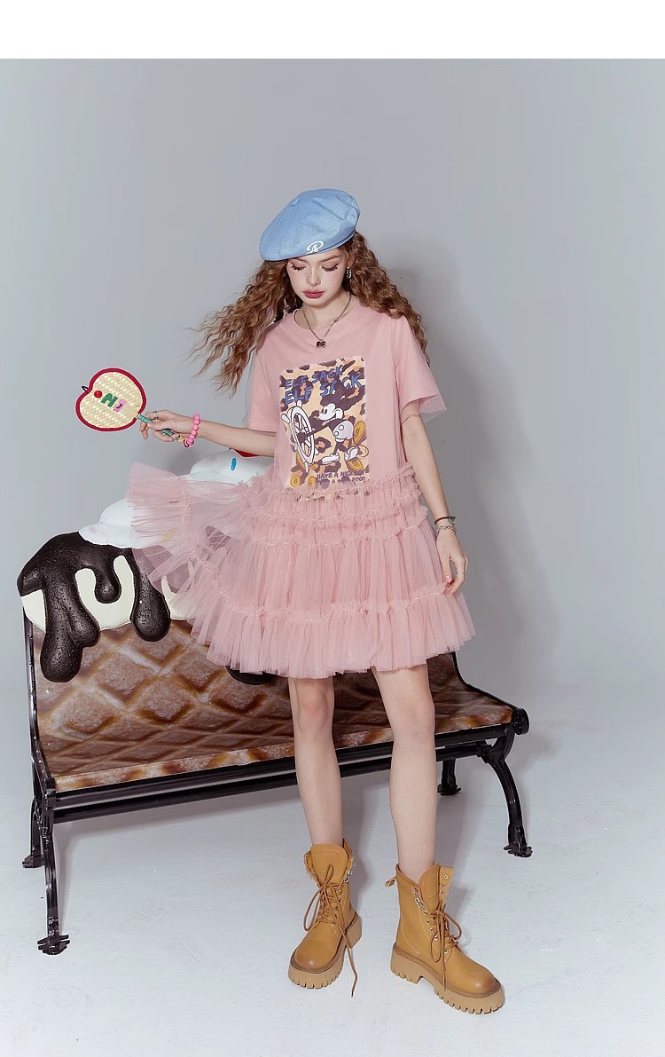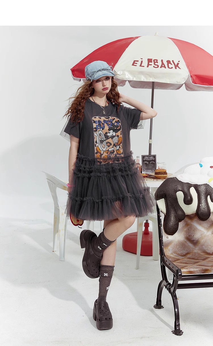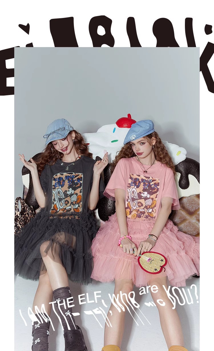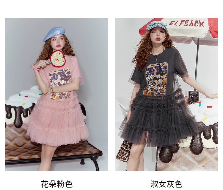 [반란군 연인 공주 원피스] 고블린의 포켓 메쉬 스티칭 프린트 티셔츠 원피스 여성의 25 여름 뉴