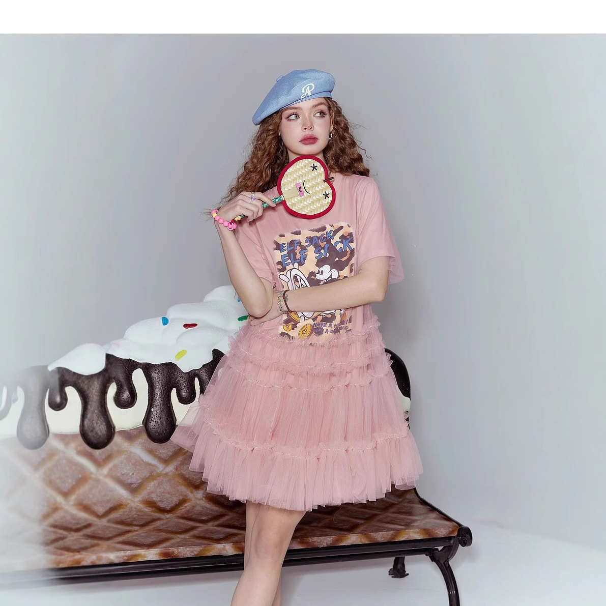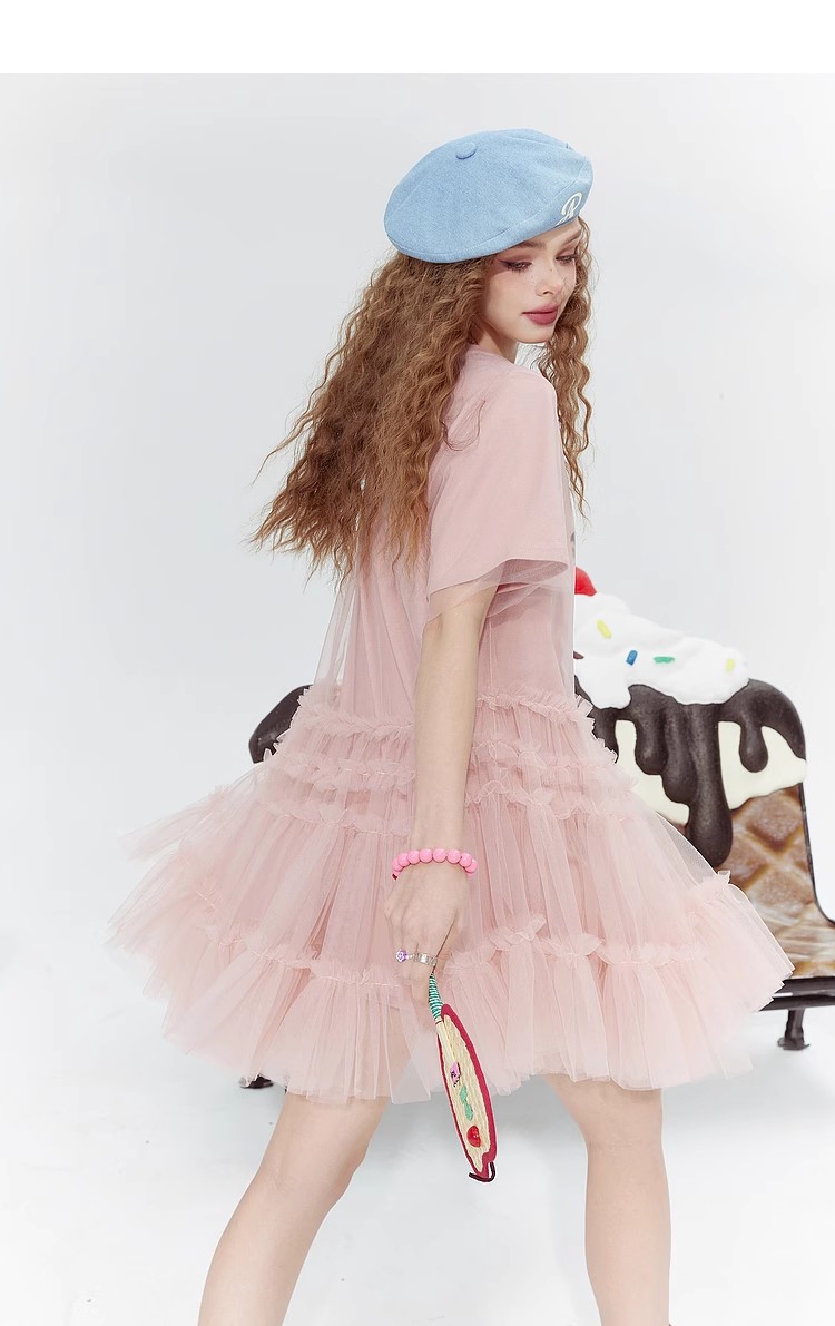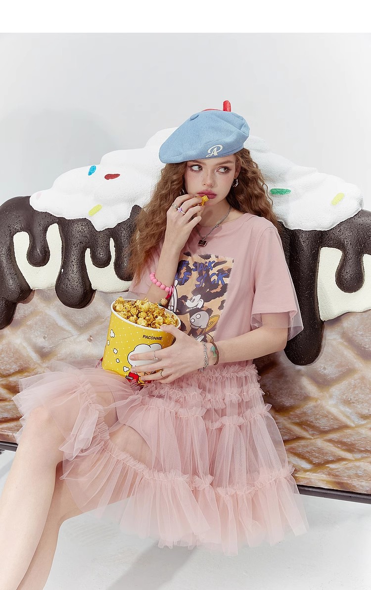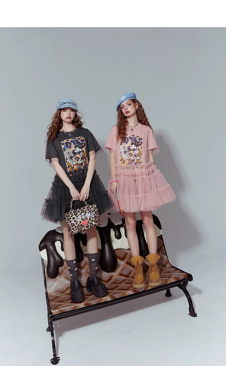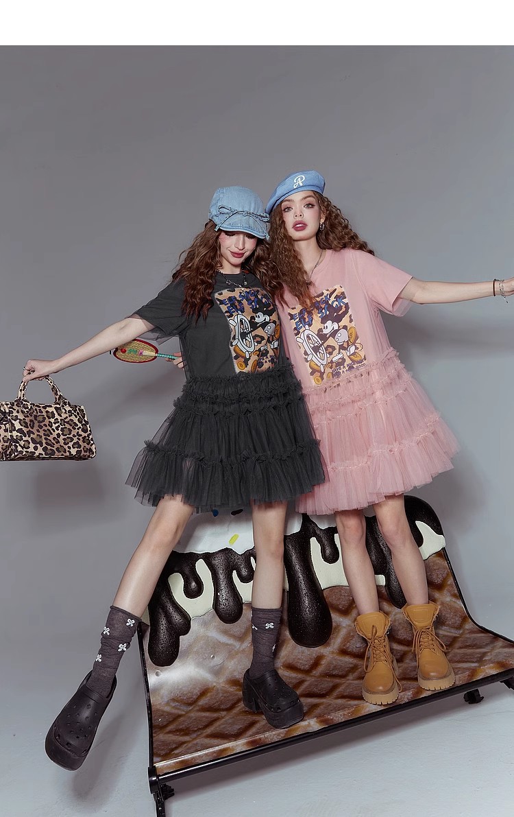 [반란군 연인 공주 원피스] 고블린의 포켓 메쉬 스티칭 프린트 티셔츠 원피스 여성의 25 여름 뉴