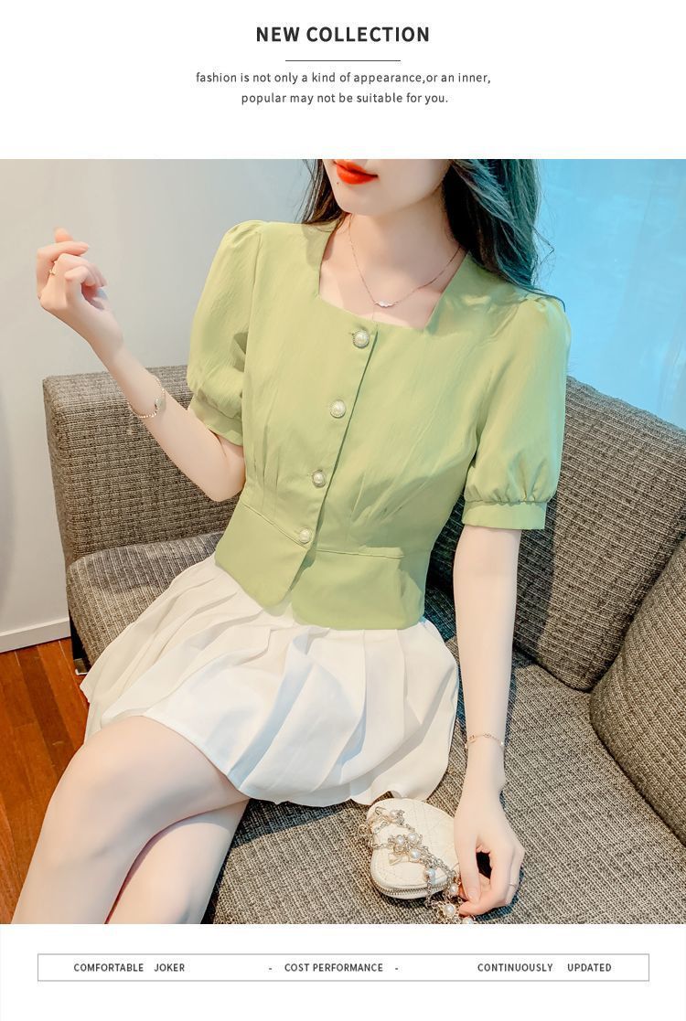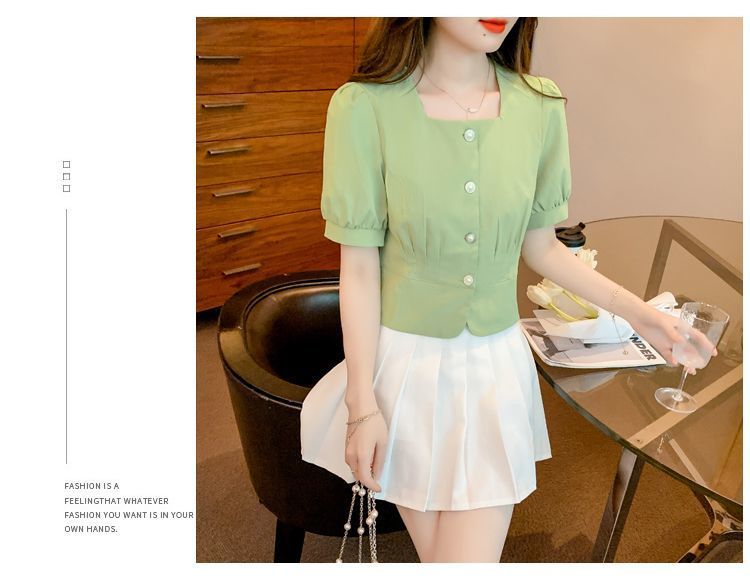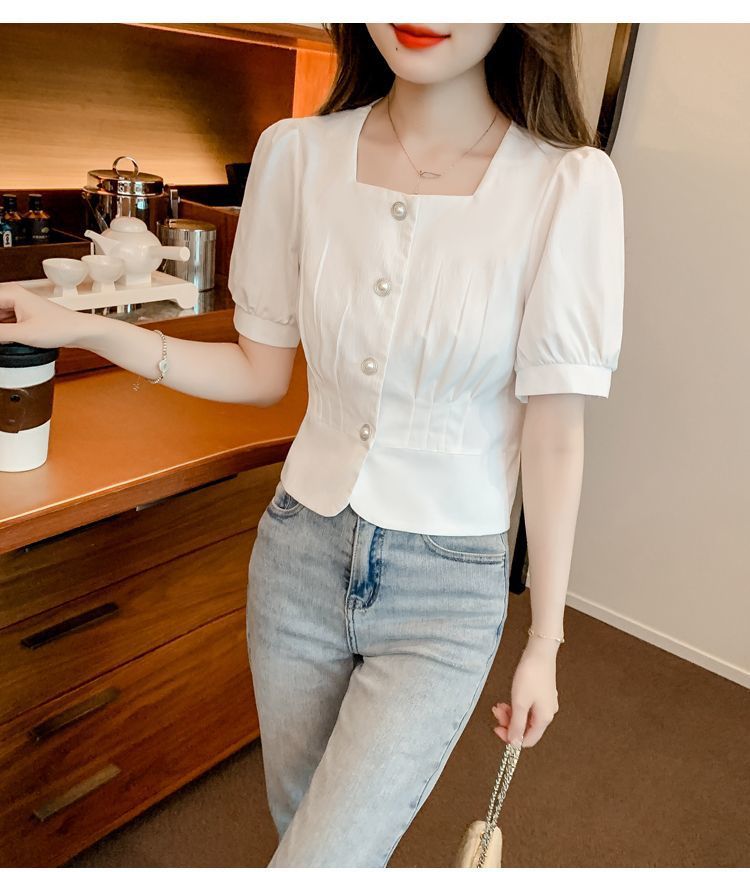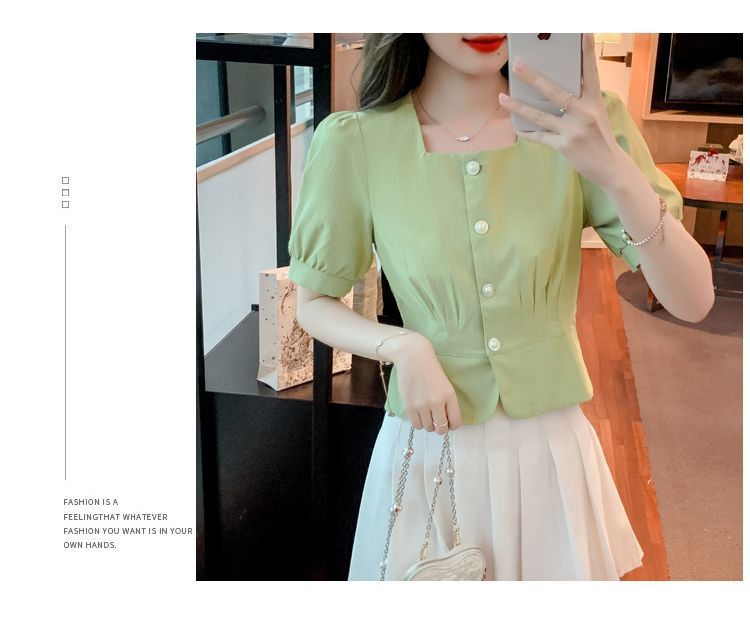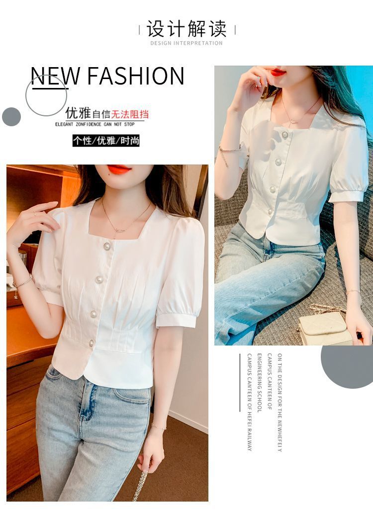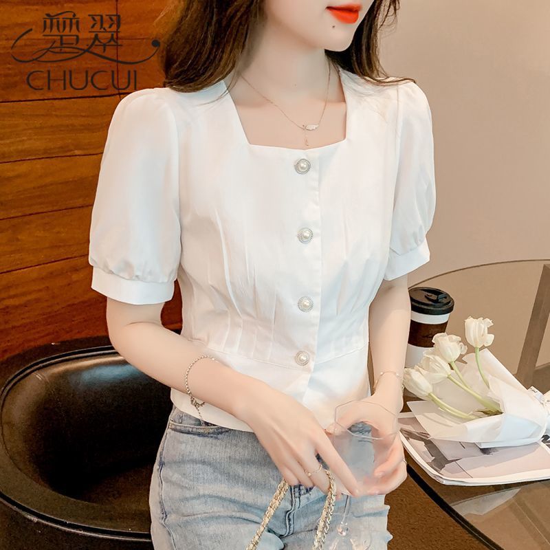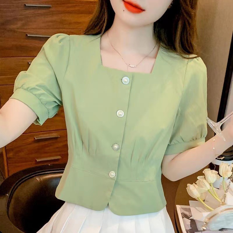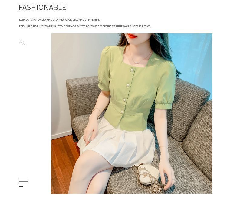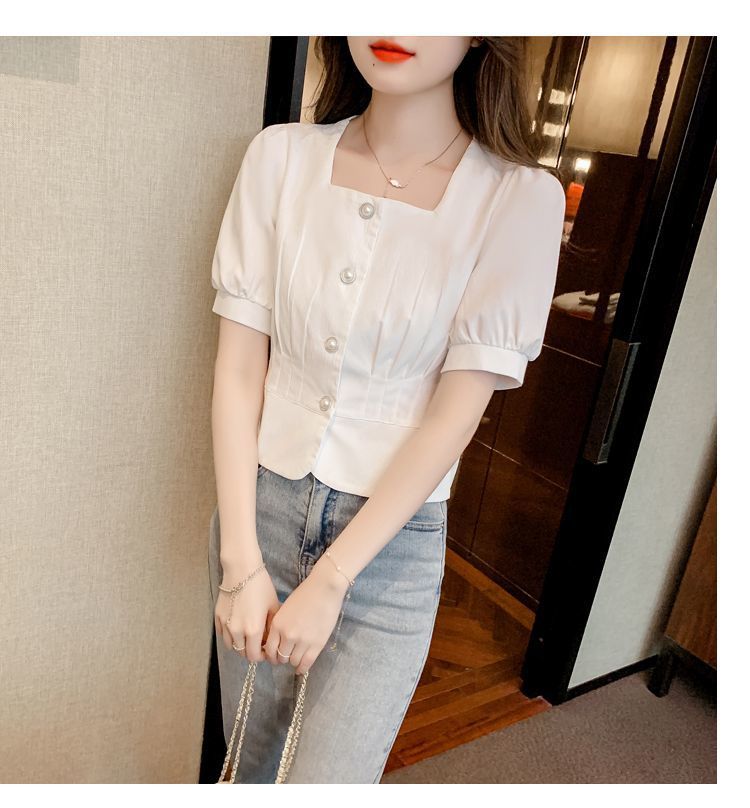 서양식 반소매 쉬폰 셔츠 여성 여름 2025 새로운 작은 허리 짧은 최고 디자인 감각 틈새스토어 가기