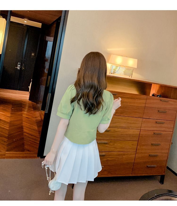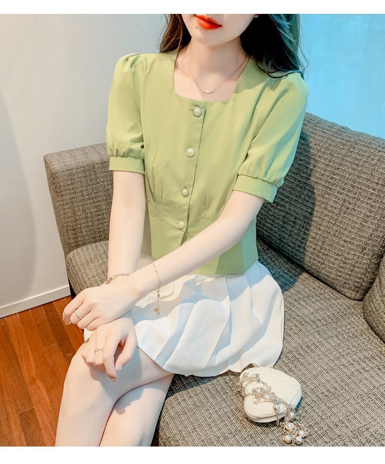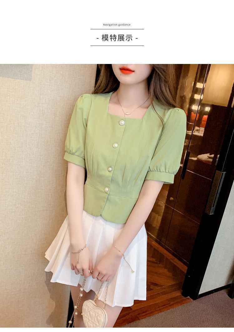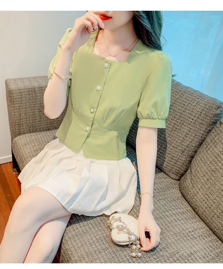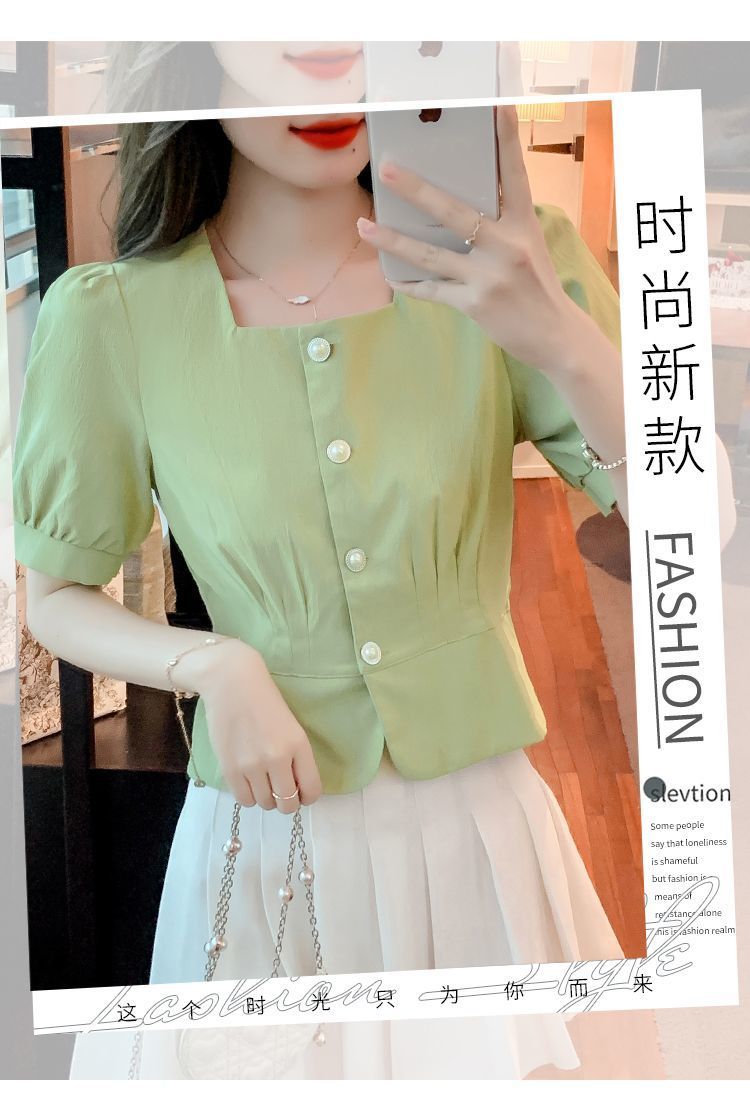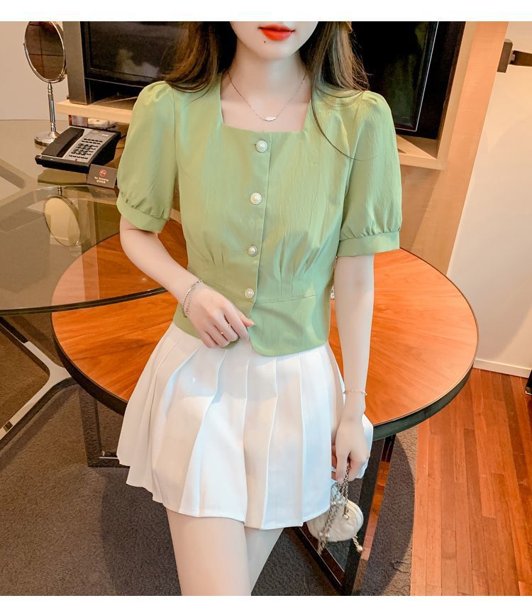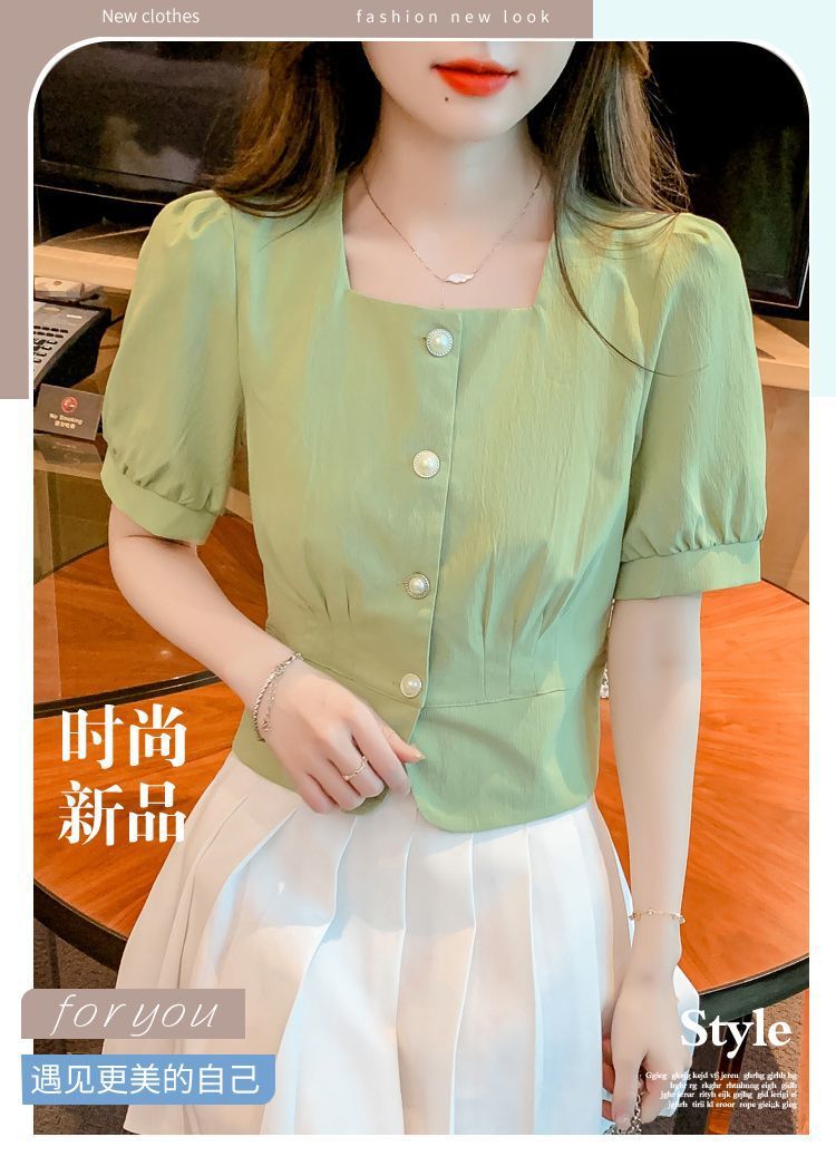 서양식 반소매 쉬폰 셔츠 여성 여름 2025 새로운 작은 허리 짧은 최고 디자인 감각 틈새스토어 가기