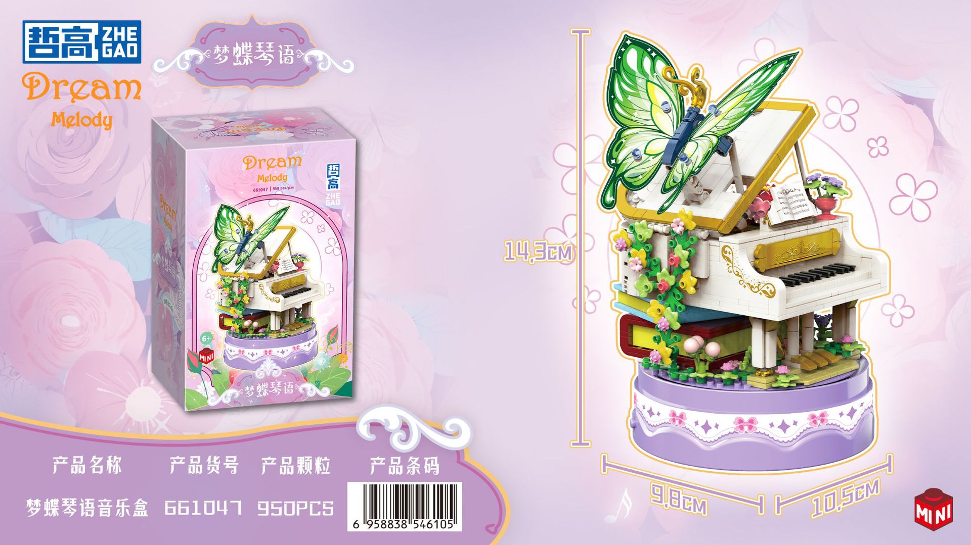 Zhegao 661047 Mengdie Qinyu 뮤직 박스 미니 입자 조립 퍼즐 빌딩 블록 장난감 장식품 선물