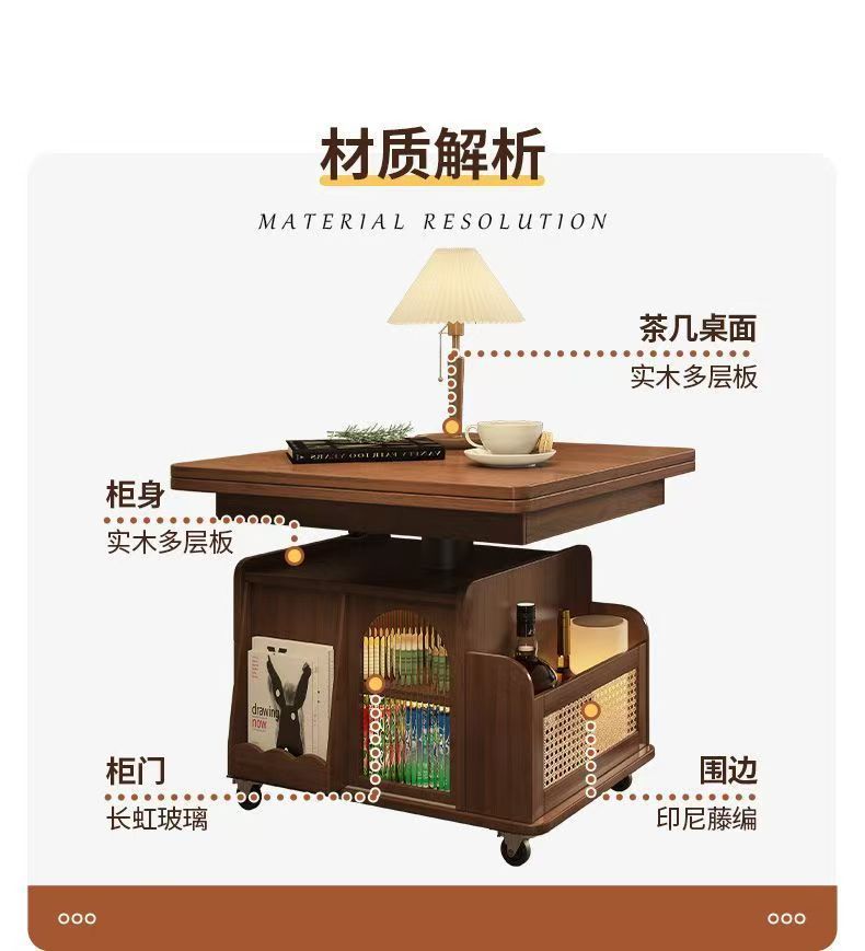 단단한 나무 폭발 리프팅 커피 테이블 모바일 카트 차 테이블 접이식 식탁 이중 목적 차 테이블 다기능 거실 소파
