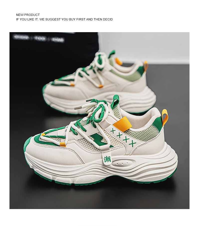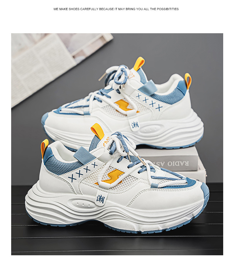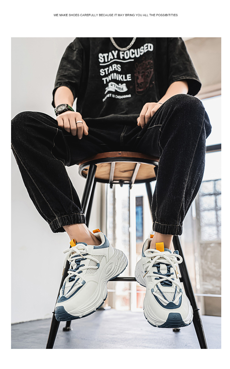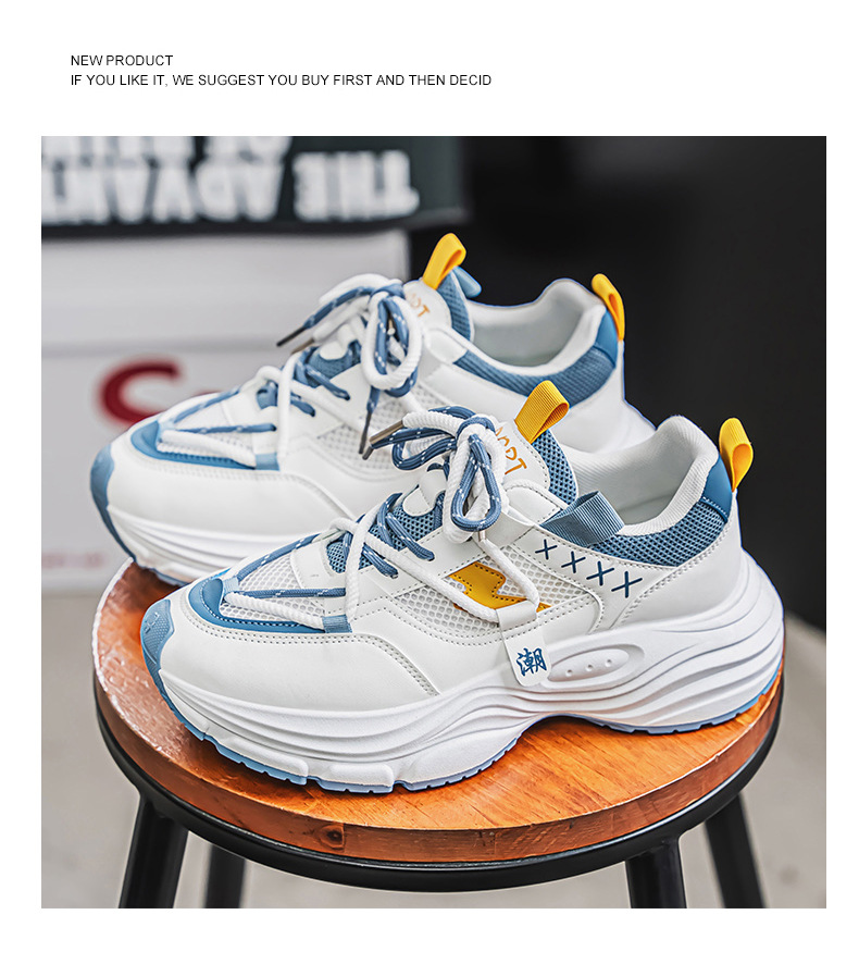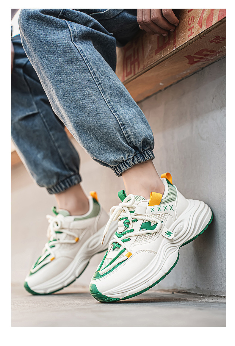 한국 패션 다재다능한 남성 트렌디 슈즈 캐주얼 스포츠 두꺼운 밑창 신발 아빠 신발 러닝 키높이 화이트 인 트렌디 슈즈스토어 가기