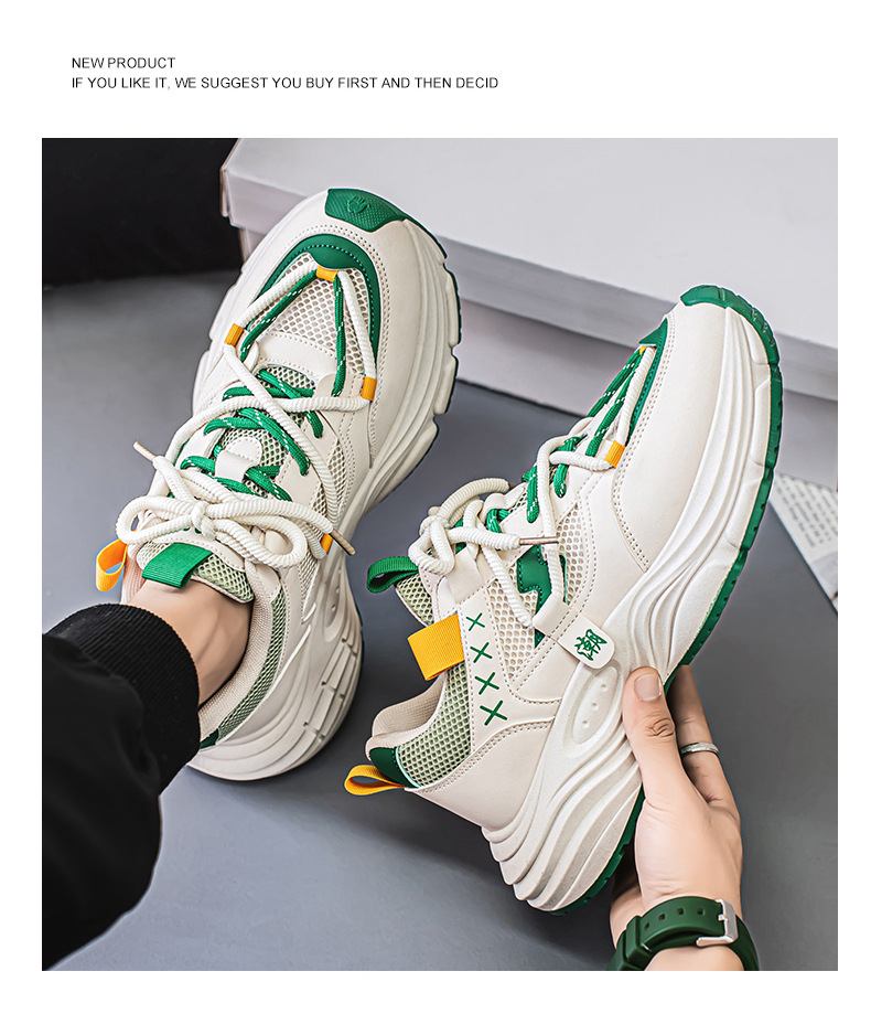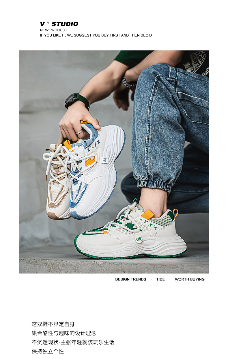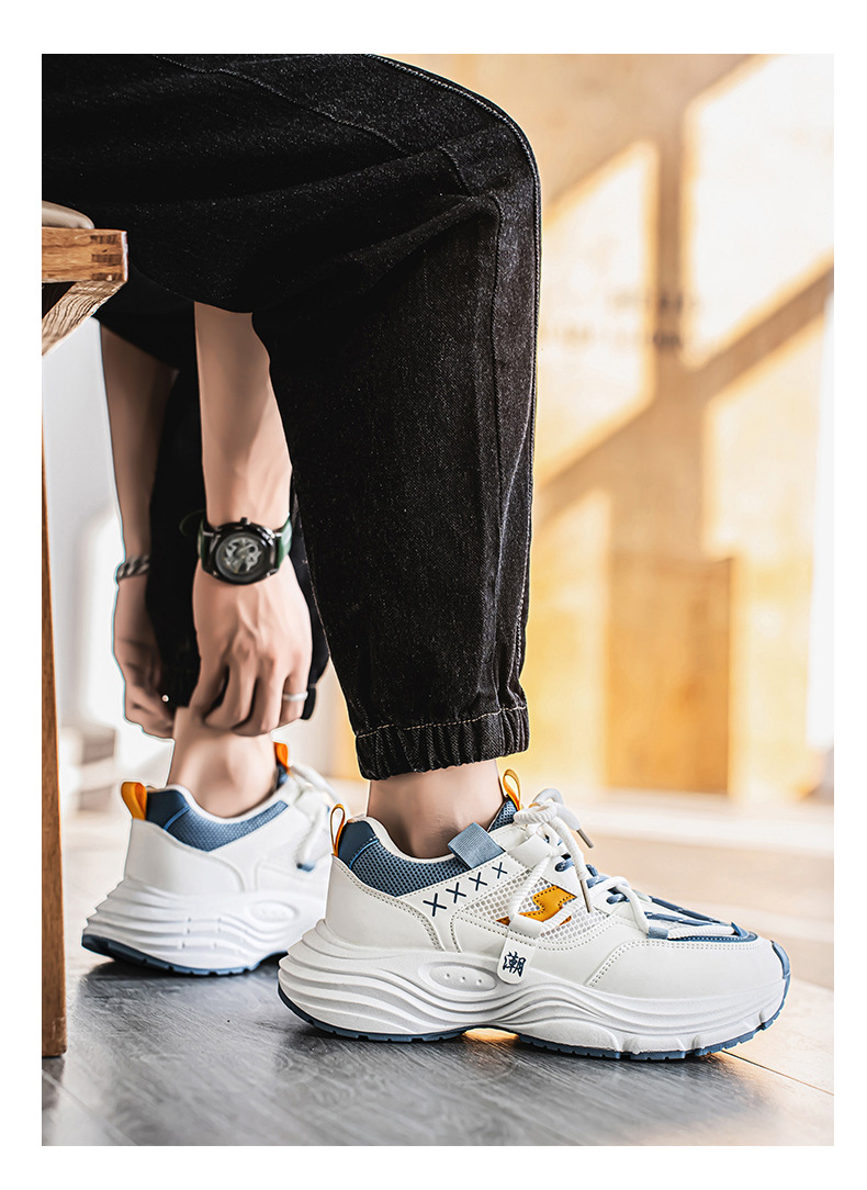 한국 패션 다재다능한 남성 트렌디 슈즈 캐주얼 스포츠 두꺼운 밑창 신발 아빠 신발 러닝 키높이 화이트 인 트렌디 슈즈