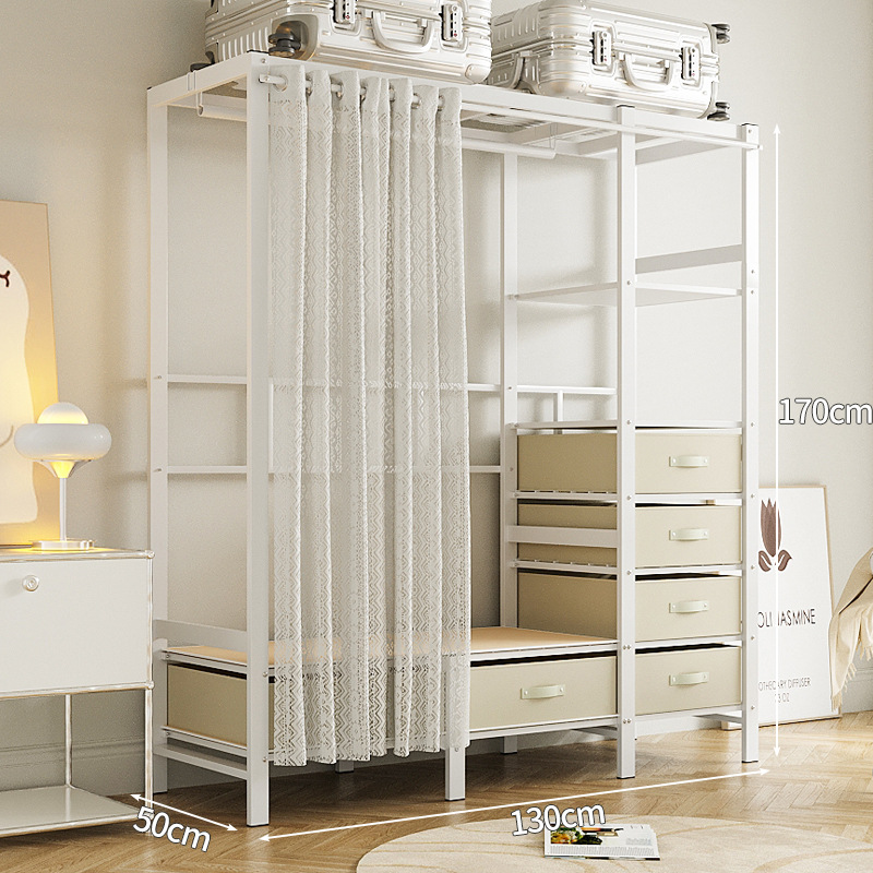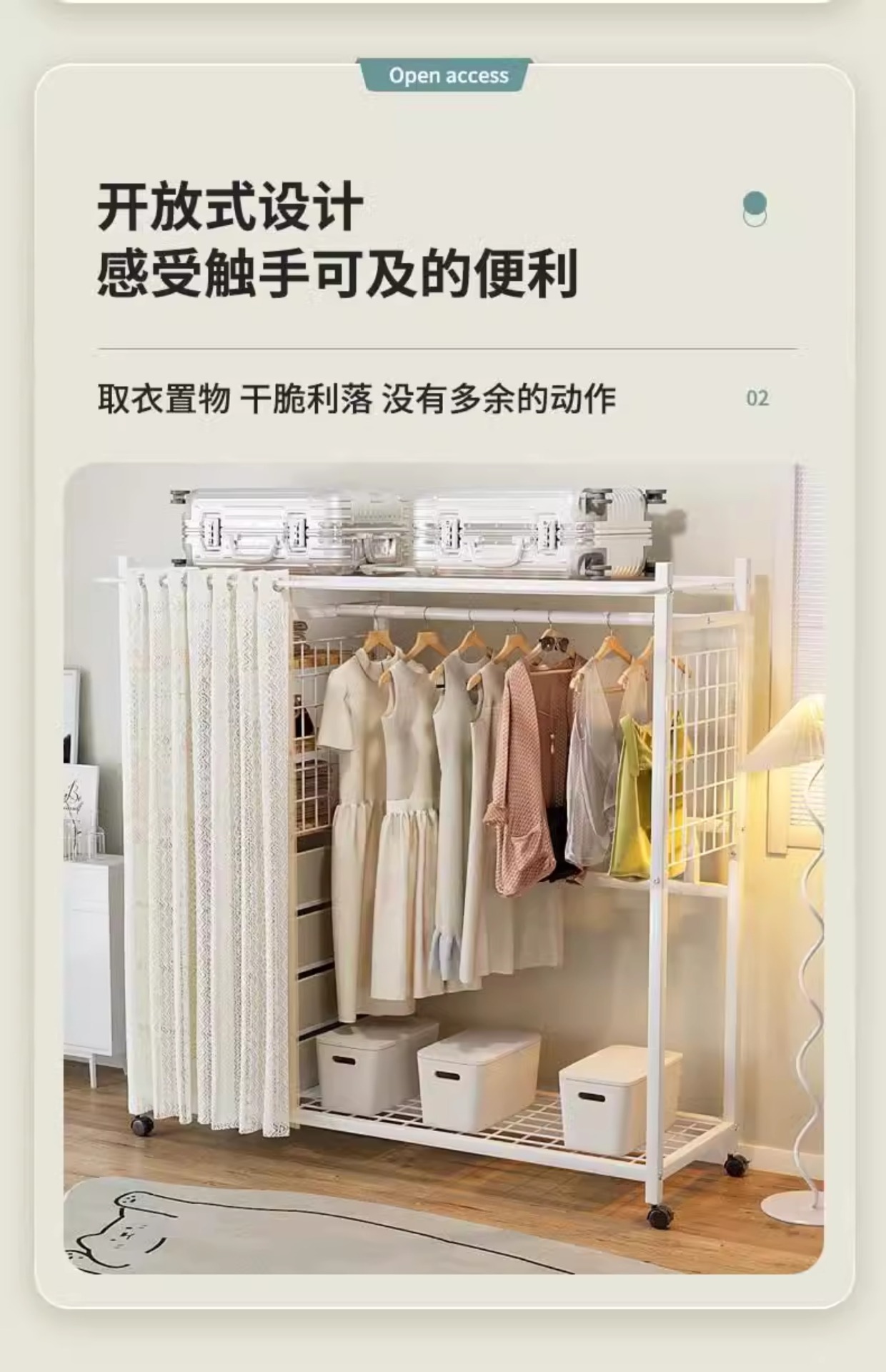 옷걸이 바닥 침실 가정용 간단한 방진 코트 랙 이동식 스토리지 랙 스틸 오픈 옷장 s^