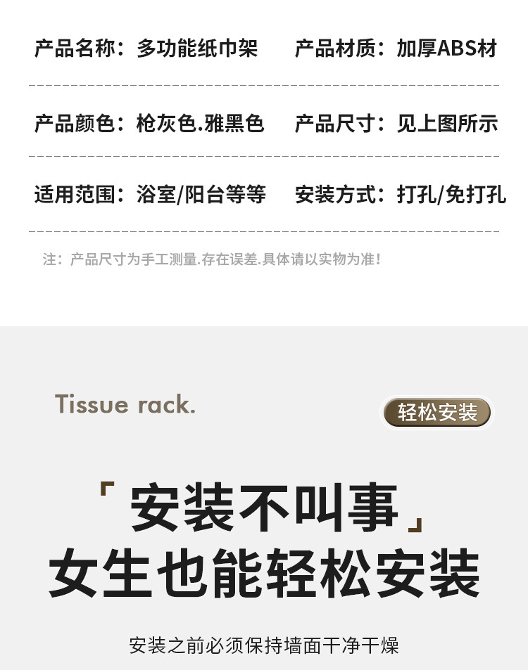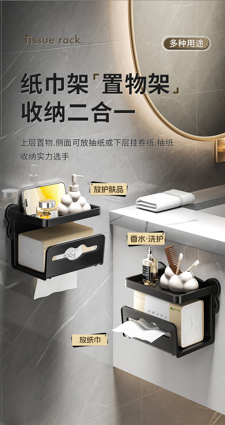 • 욕실/주방 [설치를 위한 구멍을 뚫을 필요가 없습니다] 다기능 종이 타월 홀더
