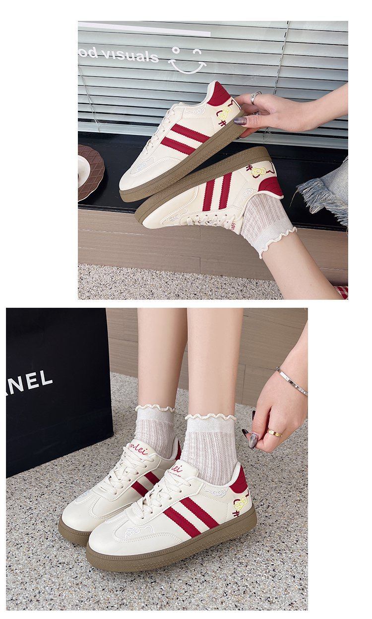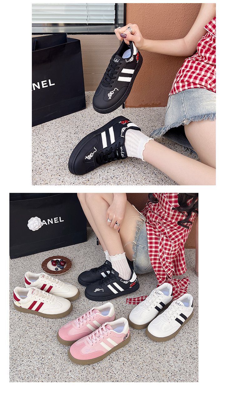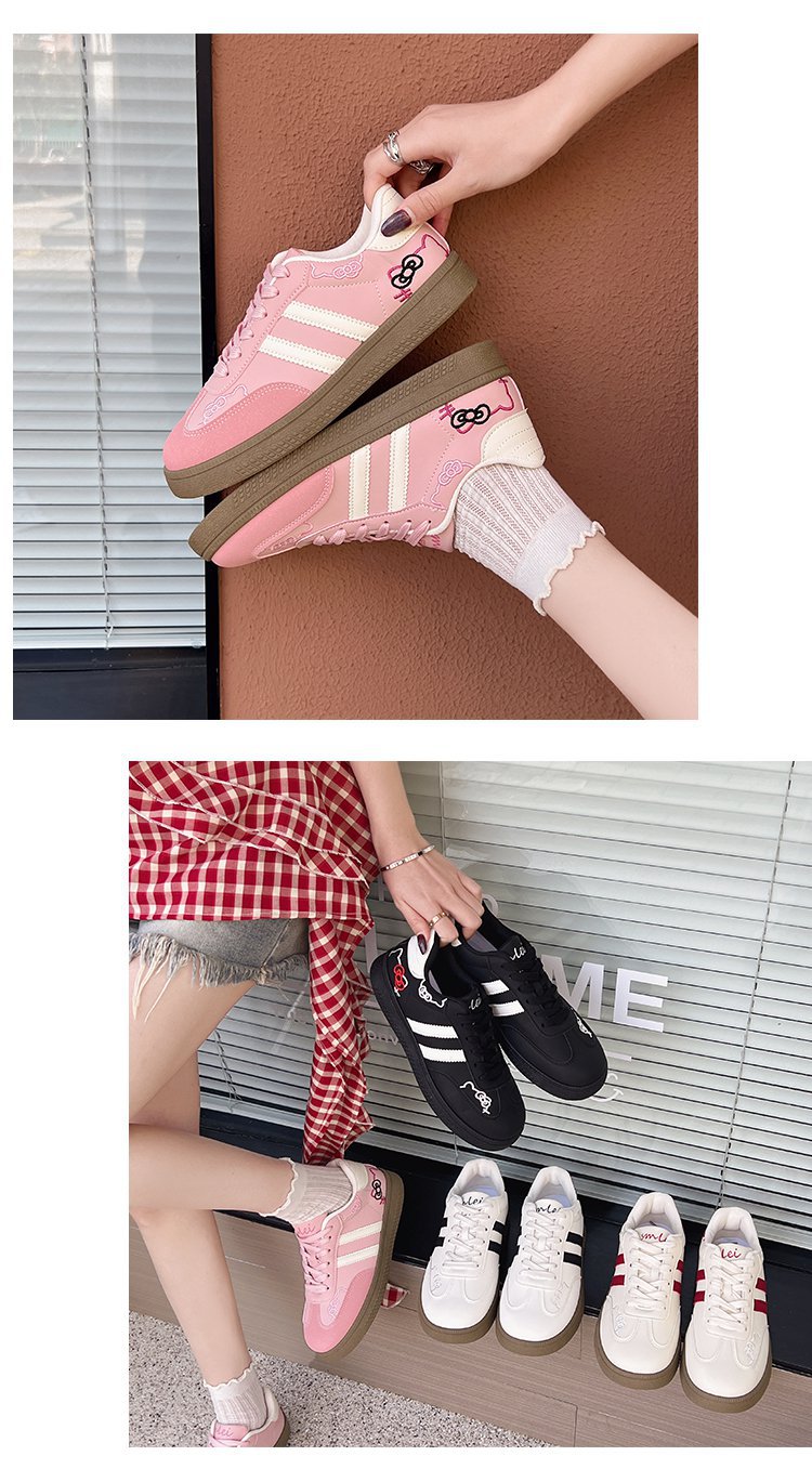 귀여운 새끼 고양이 자수 데순 신발 여성 2025 새로운 한국식 틈새 올 매치 스케이트 신발 캐주얼 화이트 신발 여성 대외 무역