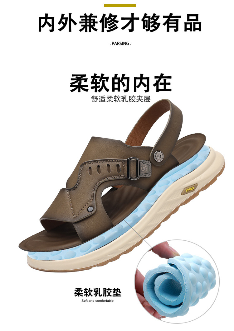 2025 여름과 봄 새로운 샌들 남성 야외 캐주얼 두꺼운 밑창 미끄럼 방지 해변 신발 다목적 이중 목적 샌들 도매