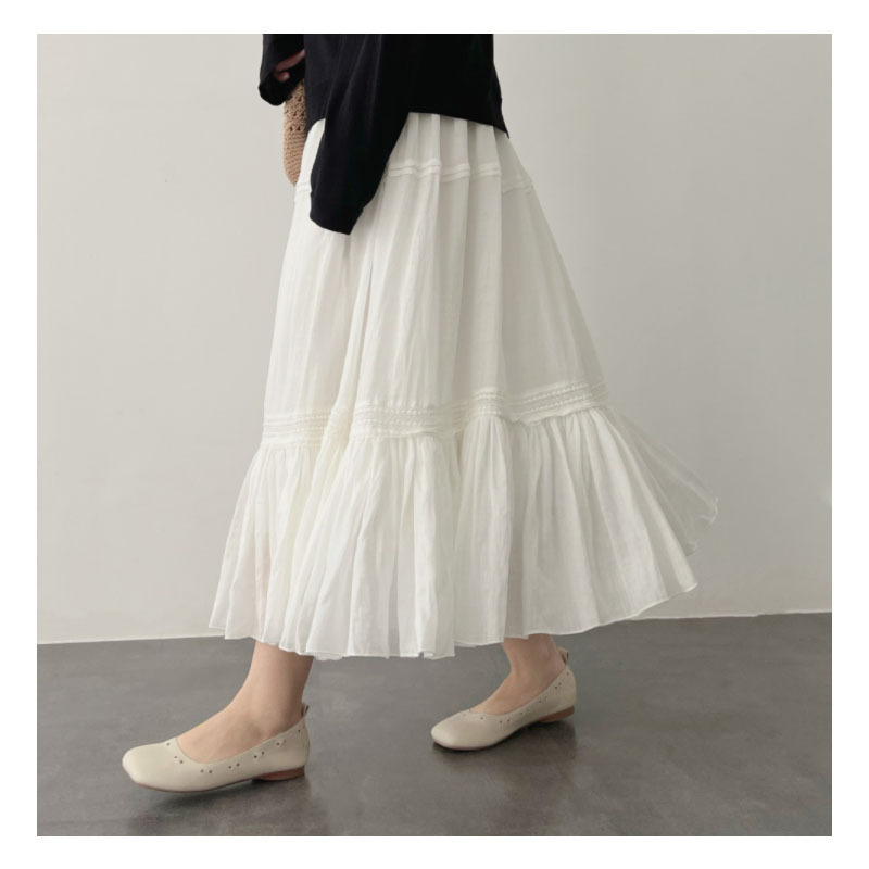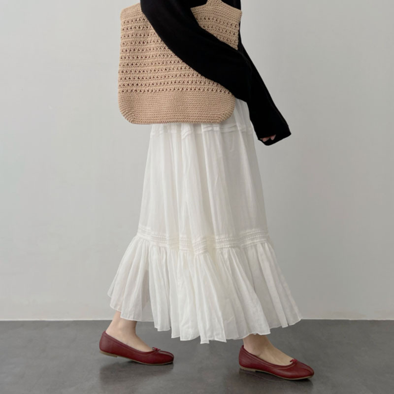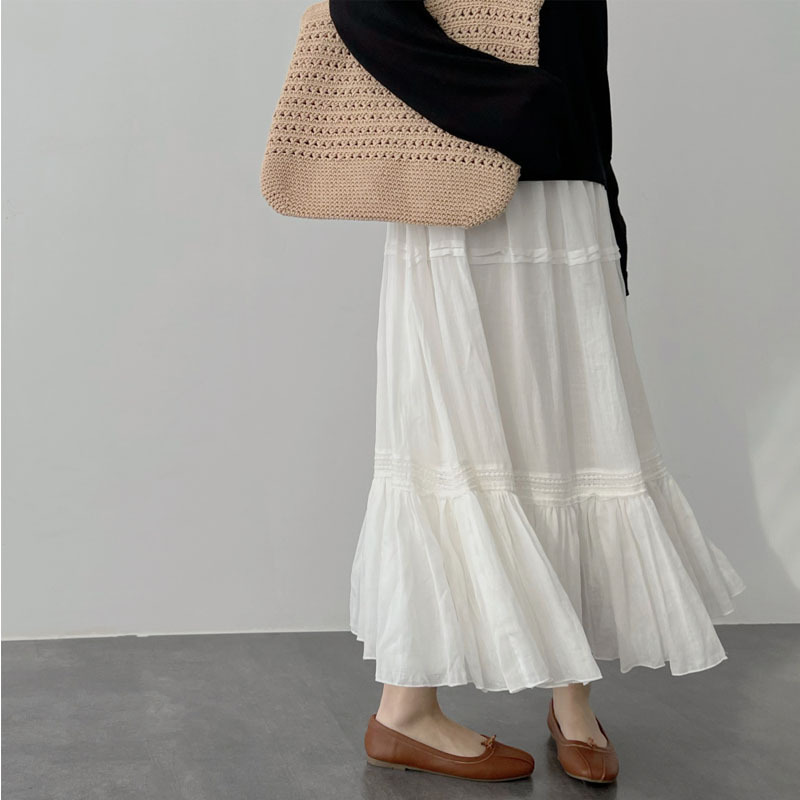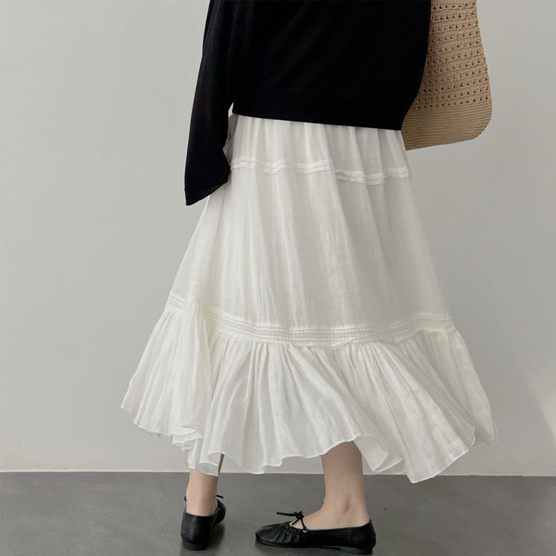 꼬인 100 얇은 부드러운 동글 라미 바느질 A 모양의 중간 길이 케이크 스커트 화이트 스커트스토어 가기