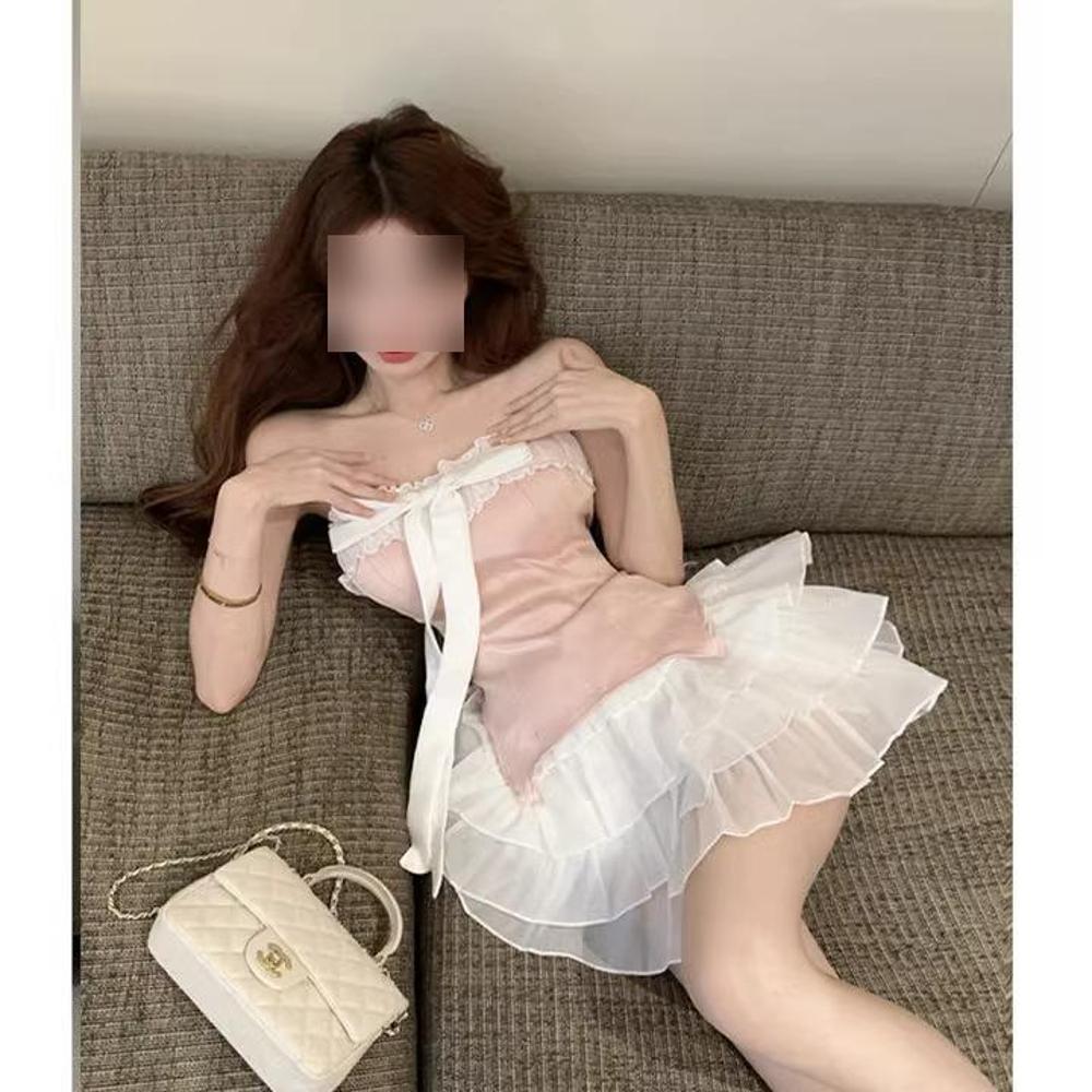 달콤한 스타일 스파이스 소녀 도파민 튜브 탑 디자인 센스 슬림 핏 슬리밍 탑 케이크 올 매치 폰툰 투피스 세트