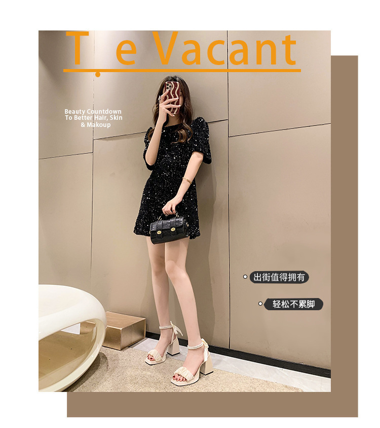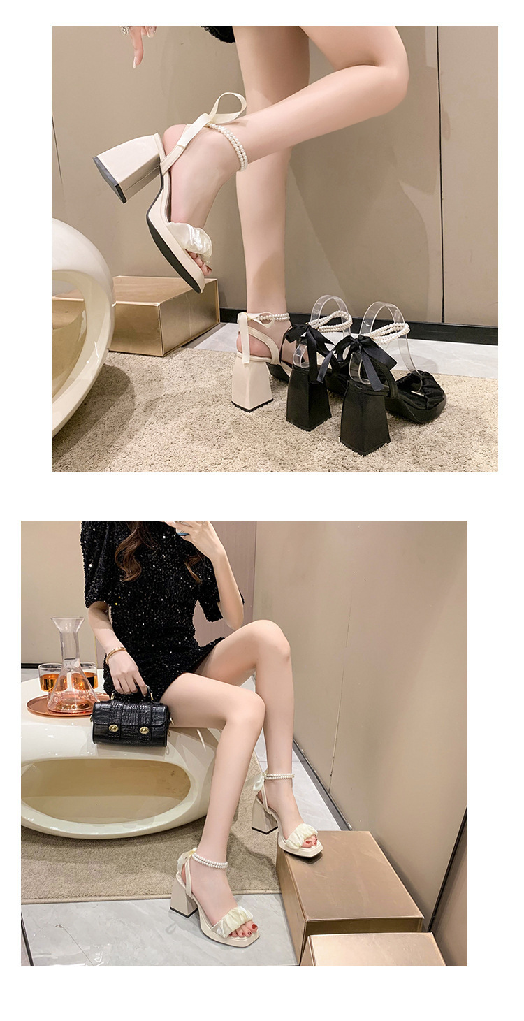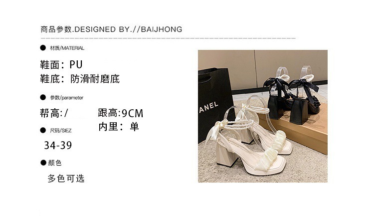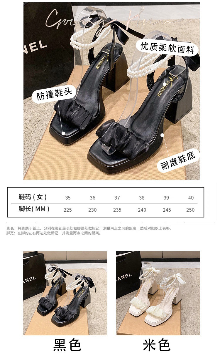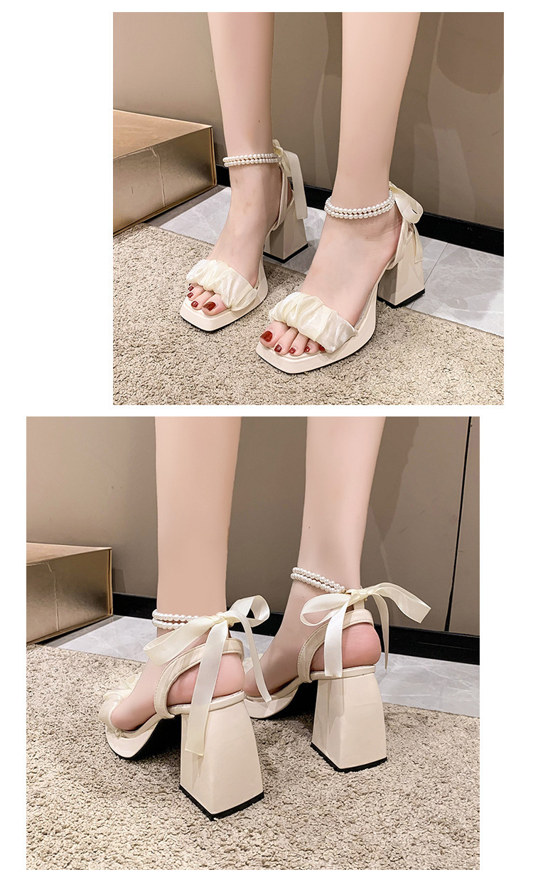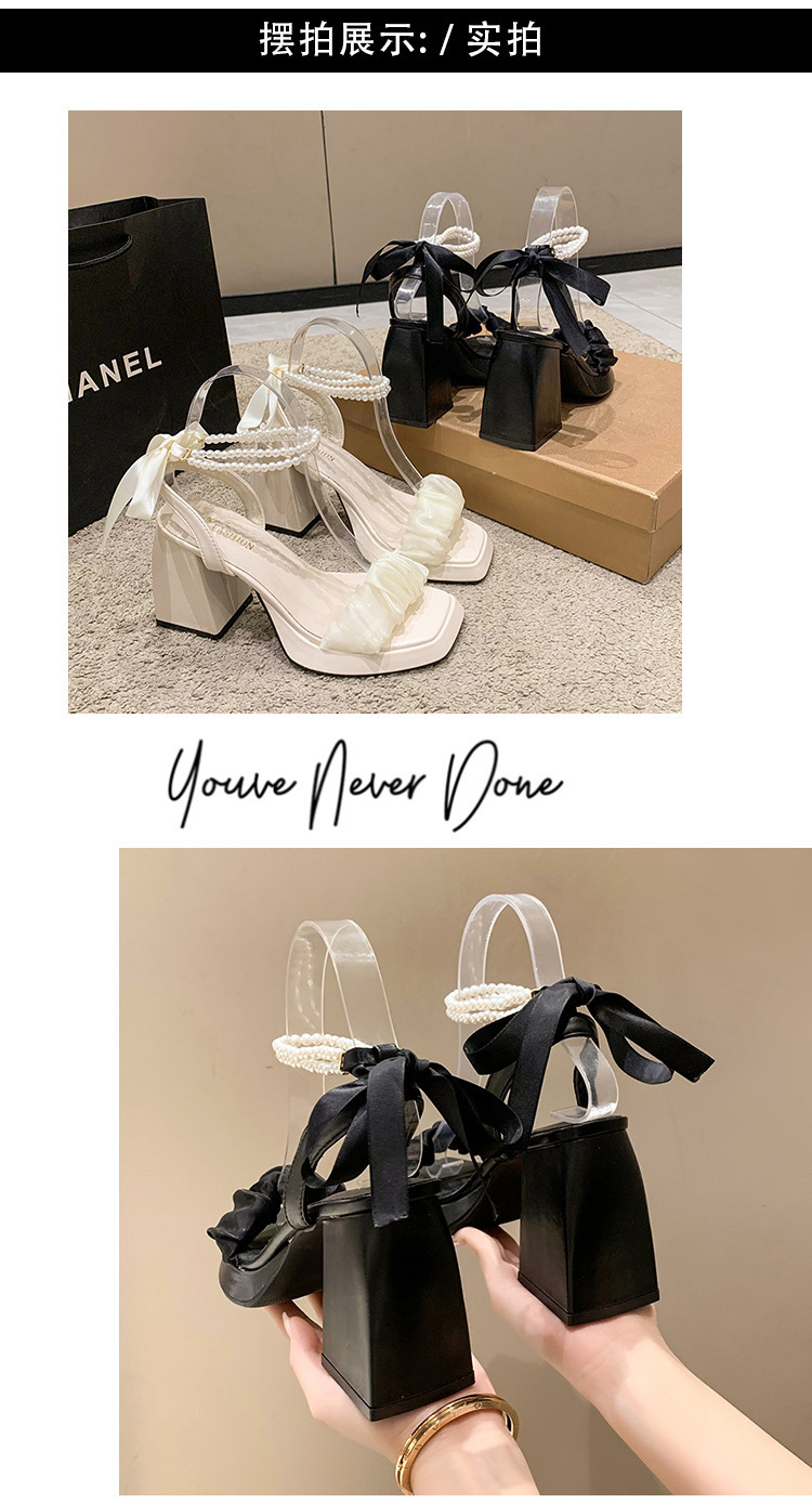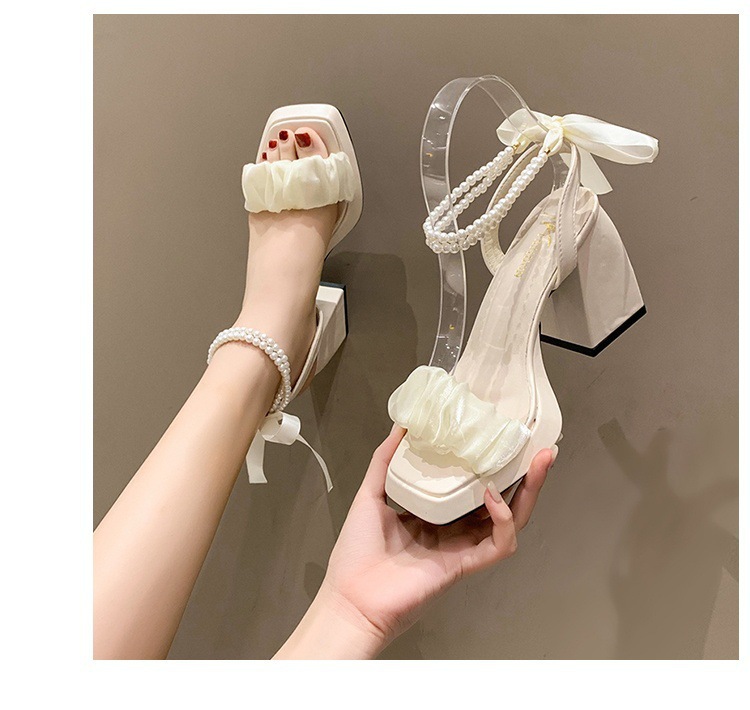 网纱高跟鞋女夏季2025年新款中粗跟水晶法式仙女珍珠罗马凉鞋ins