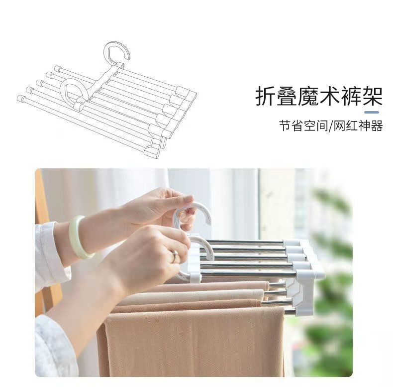 접이식 바지 랙 다기능 가정용 다층 바지 옷 랙 매직 원활한 바지 랙 옷장 보관 아티팩트 옷걸이스토어 가기