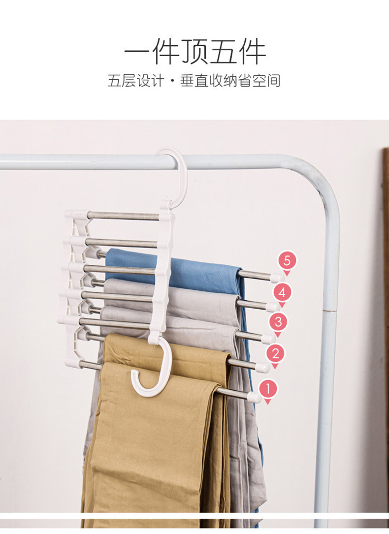 접이식 바지 랙 다기능 가정용 다층 바지 옷 랙 매직 원활한 바지 랙 옷장 보관 아티팩트 옷걸이