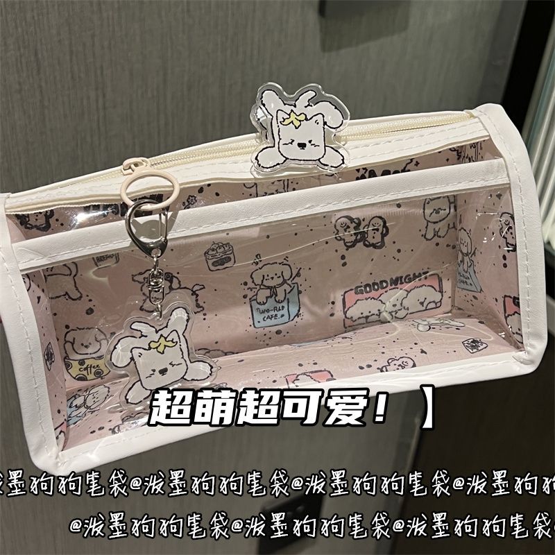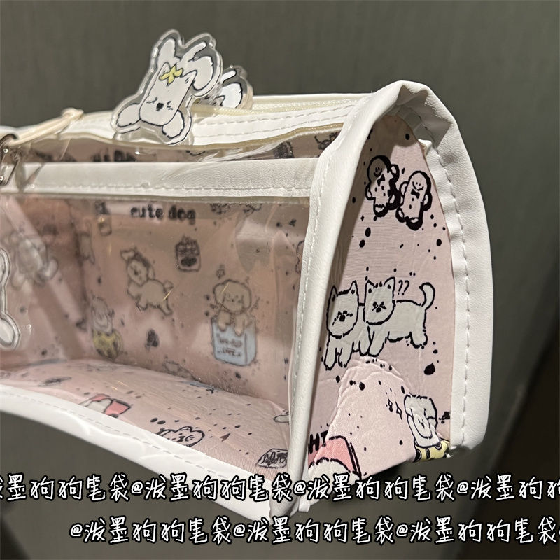 잉크 스플래시 개 투명 더블 레이어 펜 가방 스타일 고가치 귀여운 학생 대용량 문구 보관 가방 도매스토어 가기