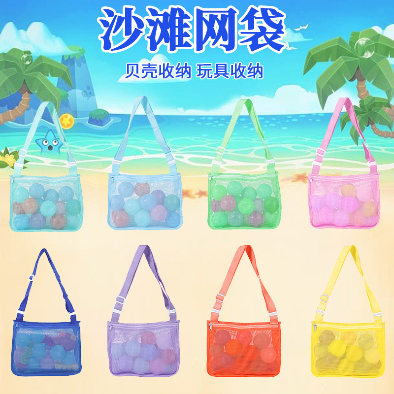 다양한 재고 야외 해변 가방 어린이 해변 장난감 저장 가방 모래 놀이 장비 비치 메쉬 가방 대용량 그물