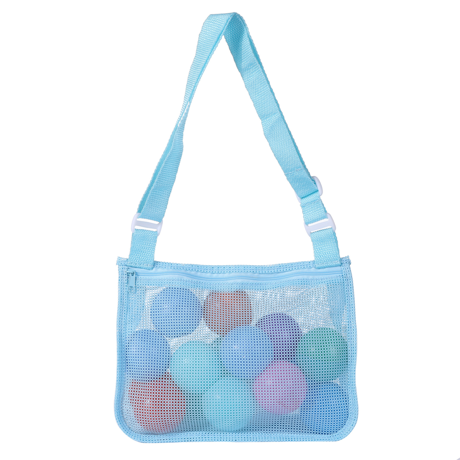 • 블루 그린 벨트가 달린 원숄더 메쉬 백 20*24*7cm