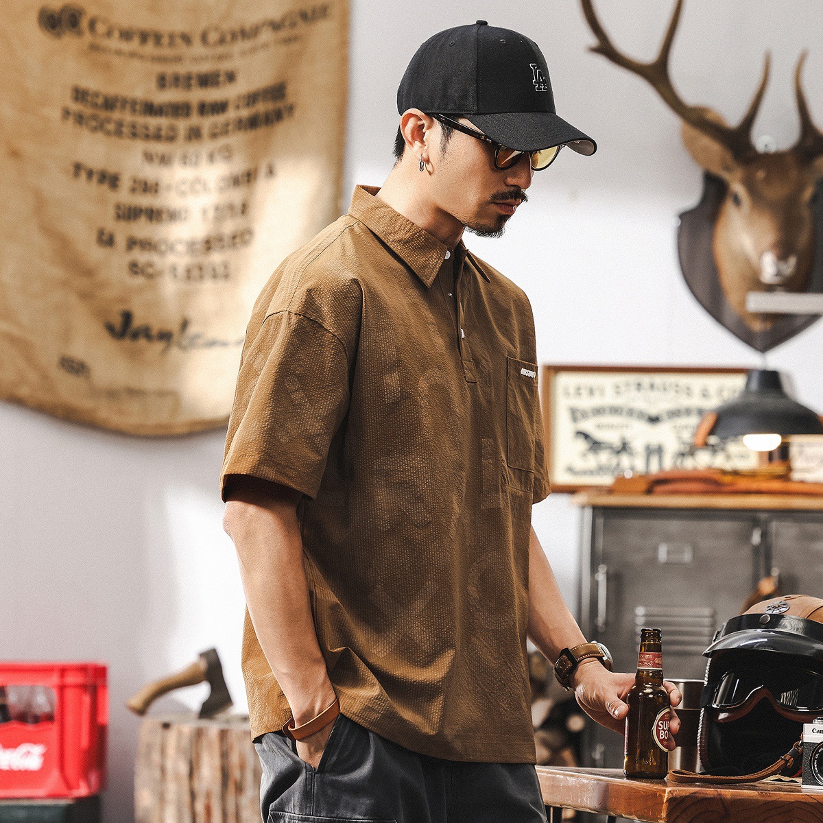 Maillard Retro Texture 폴로 셔츠 남자 여름 2025 새로운 패션 브랜드 느슨한 반팔 티셔츠 남성용 탑