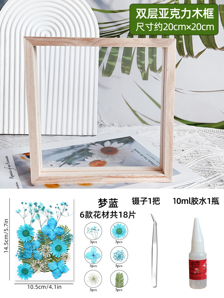 • 20*20cm 더블 레이어 아크릴 액자 + 드림 블루 - 18개 + 핀셋 + 10ml 접착제