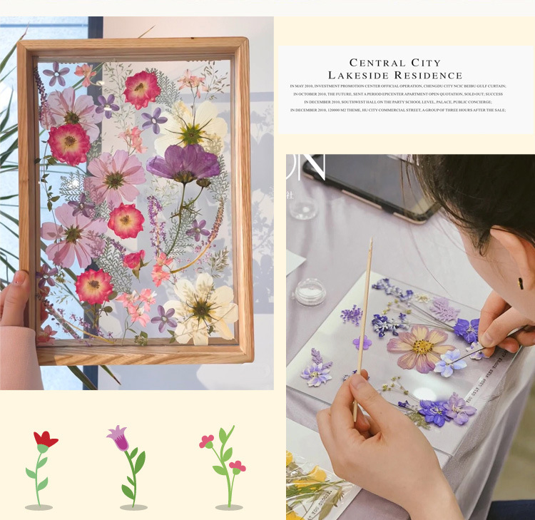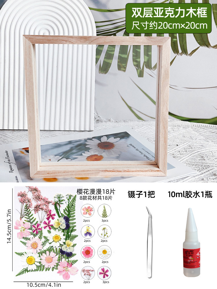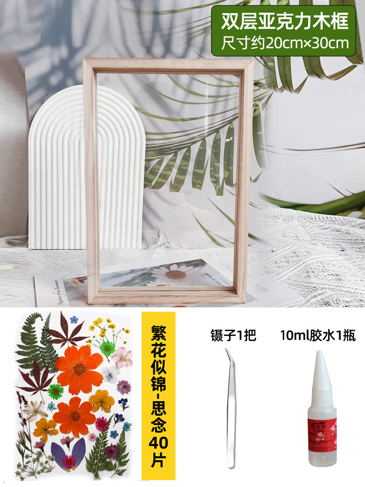 • 20*30cm 더블 레이어 아크릴 액자 + 피는 꽃 - 40개 누락 + 핀셋 + 10ml 접착제
