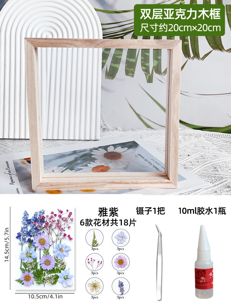 • 20*20cm 더블 레이어 아크릴 액자 + 우아한 보라색 - 18개 + 핀셋 + 10ml 접착제