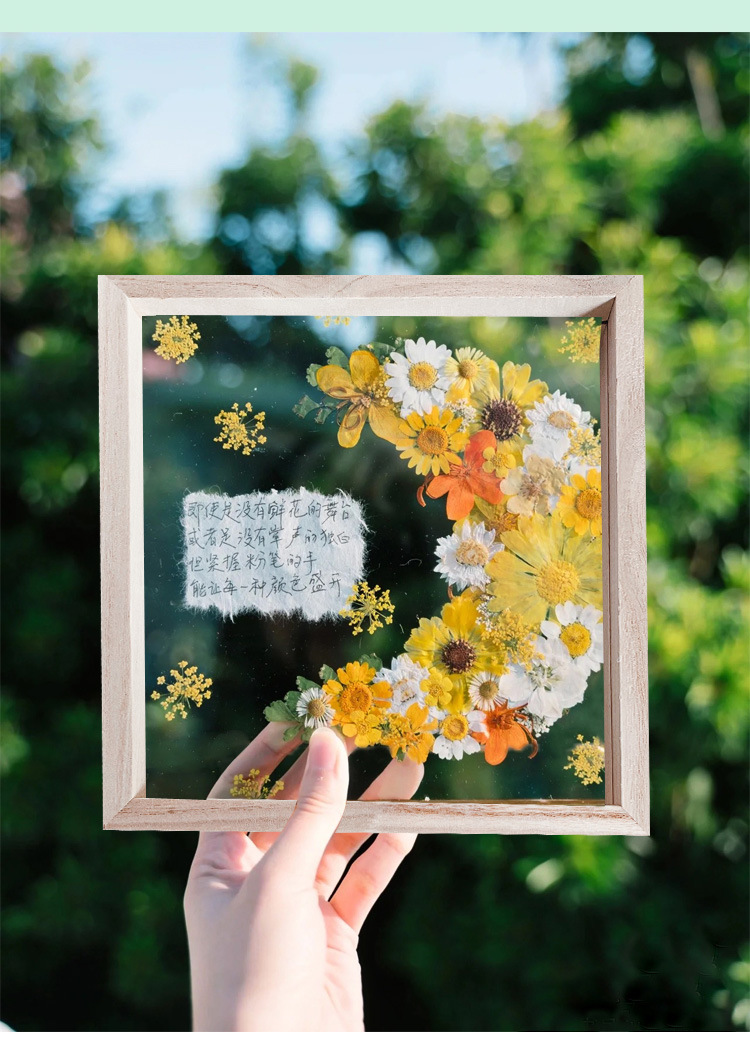 말린 꽃 양각 사진 프레임 아크릴 투명 플라스틱 필름 수제 DIY 소재 식물 잎 표본 유리 프레임