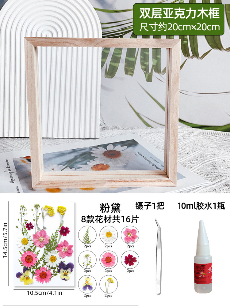 • 20*20cm 더블 레이어 아크릴 액자 + 핑크 다이 - 16개 + 핀셋 + 10ml 접착제