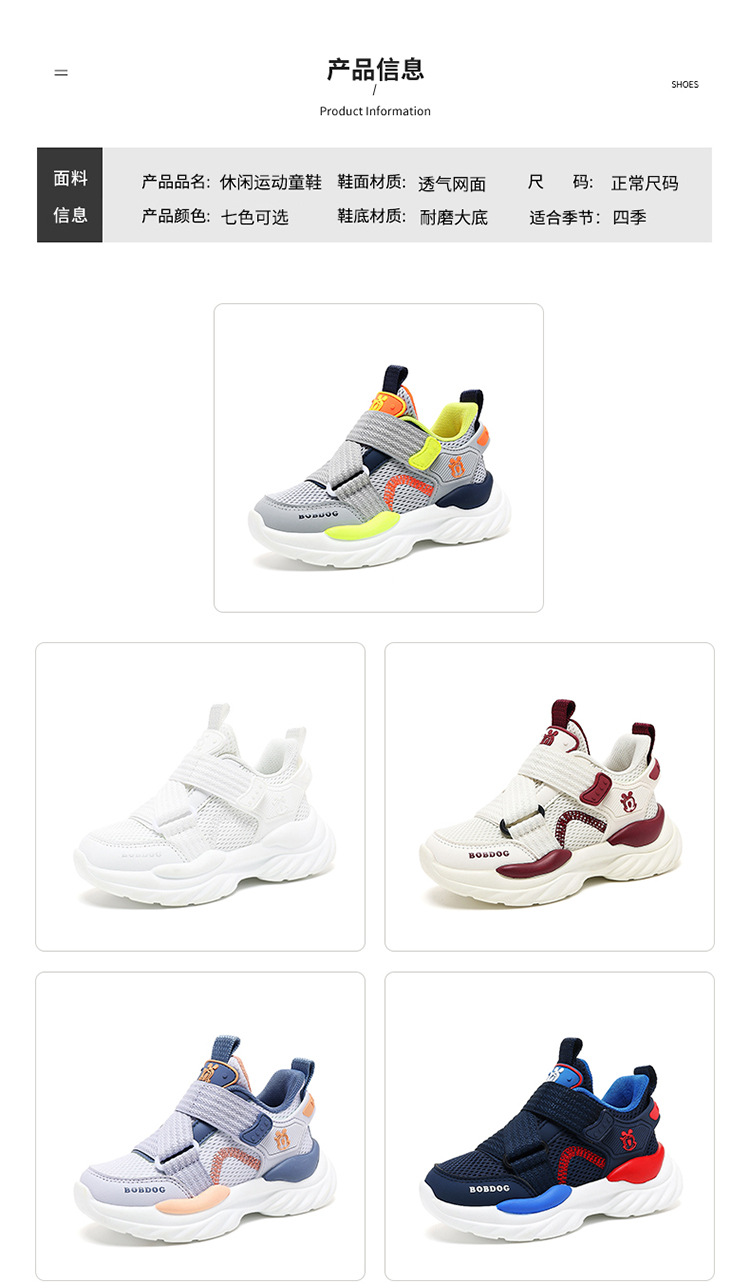 Babudou 아동 신발 소년 신발 2025 봄과 가을 새로운 메쉬 통기성 아동 캐주얼 신발 중대형 아동 운동화