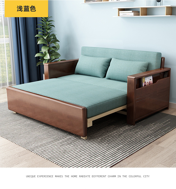 단단한 나무 소파 침대 거실 다기능 이중 사용 개폐식 싱글 침대 저장 소형 아파트 소파 솔리드 우드 침대스토어 가기