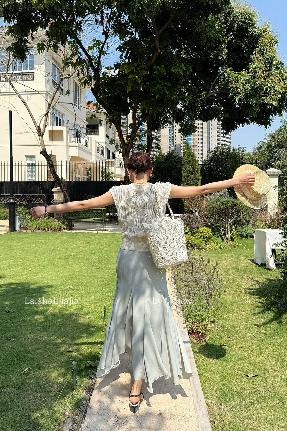 LS 높은 허리 불규칙한 스티칭 디자인 긴 원피스 2025 여름 새로운 대형 스윙 피쉬 스커트 81255