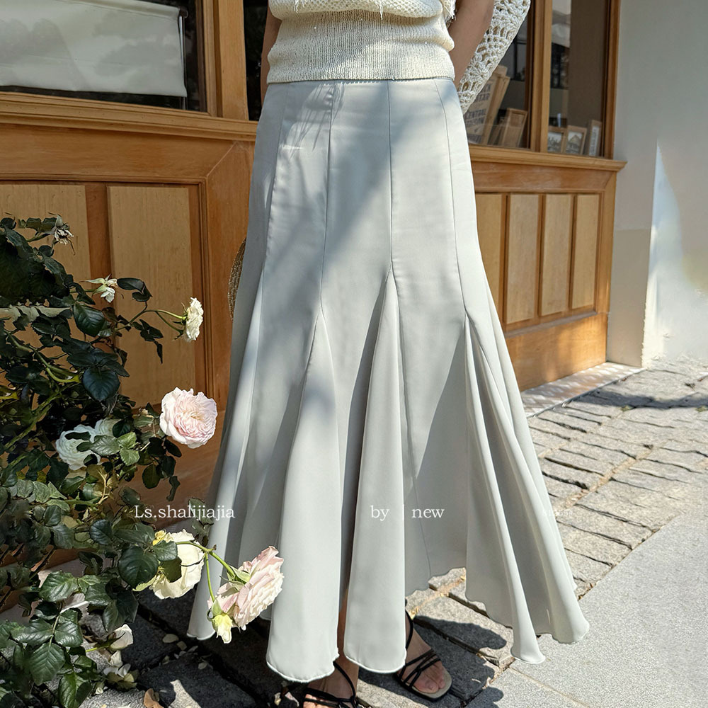 LS 높은 허리 불규칙한 스티칭 디자인 긴 원피스 2025 여름 새로운 대형 스윙 피쉬 스커트 81255스토어 가기