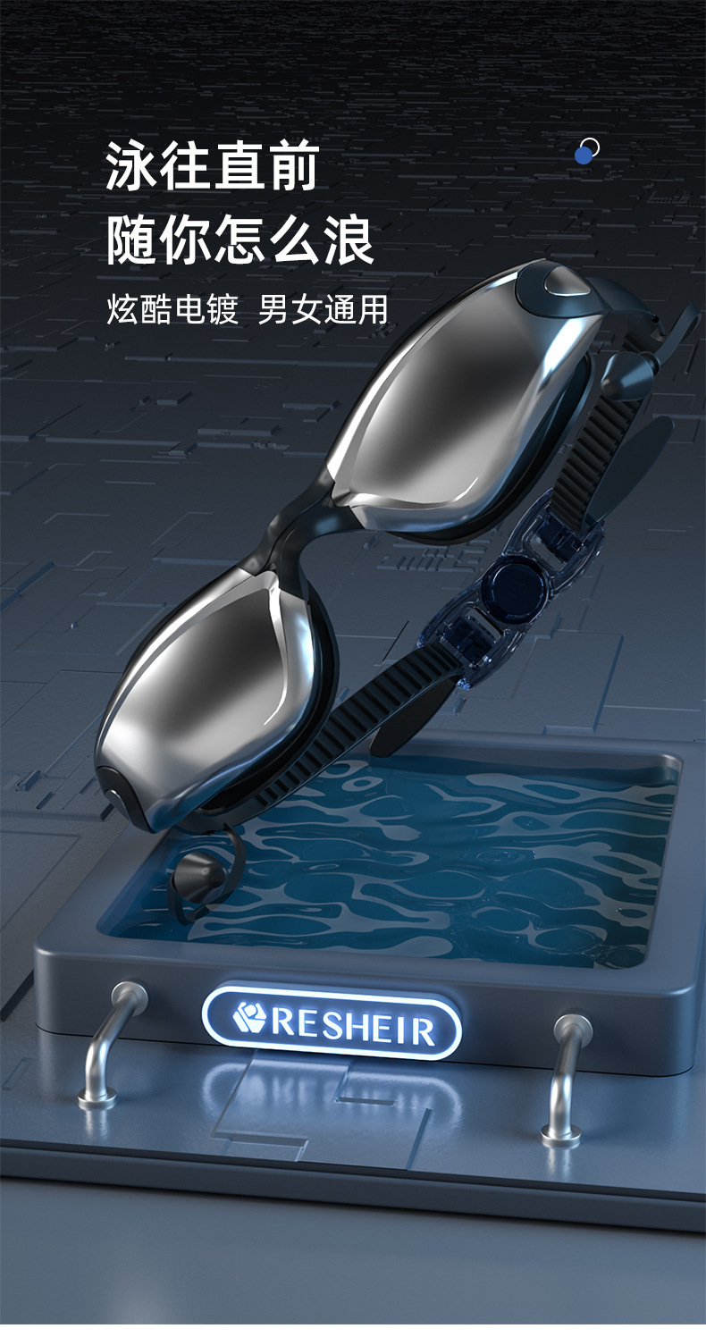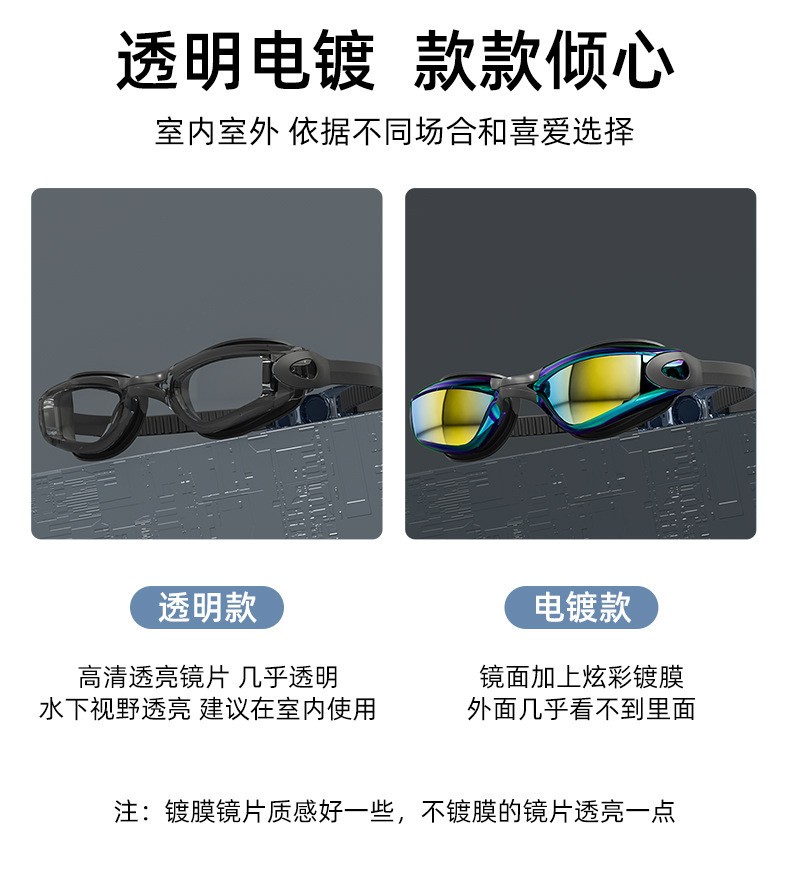 공장 직접 고화질 수영 고글 성인 남성과 여성 방수 안개 방지 전기 도금 수영 안경 도매 근시 고글스토어 가기
