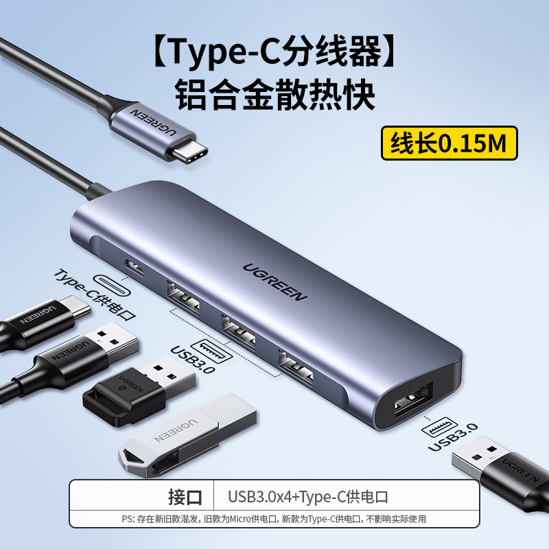 • USB3.0 [알루미늄 합금 모델] USB3.0x4+Type-C 전원 공급 장치/케이블 길이 0.2-2m.-0.15m
