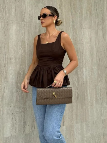 2025 새로운 여름 스타일 유럽과 미국의 프렌치 스퀘어 넥 섹시 슬림 서스펜더 드레스 스위트 쉬폰 백리스 서스펜더스토어 가기