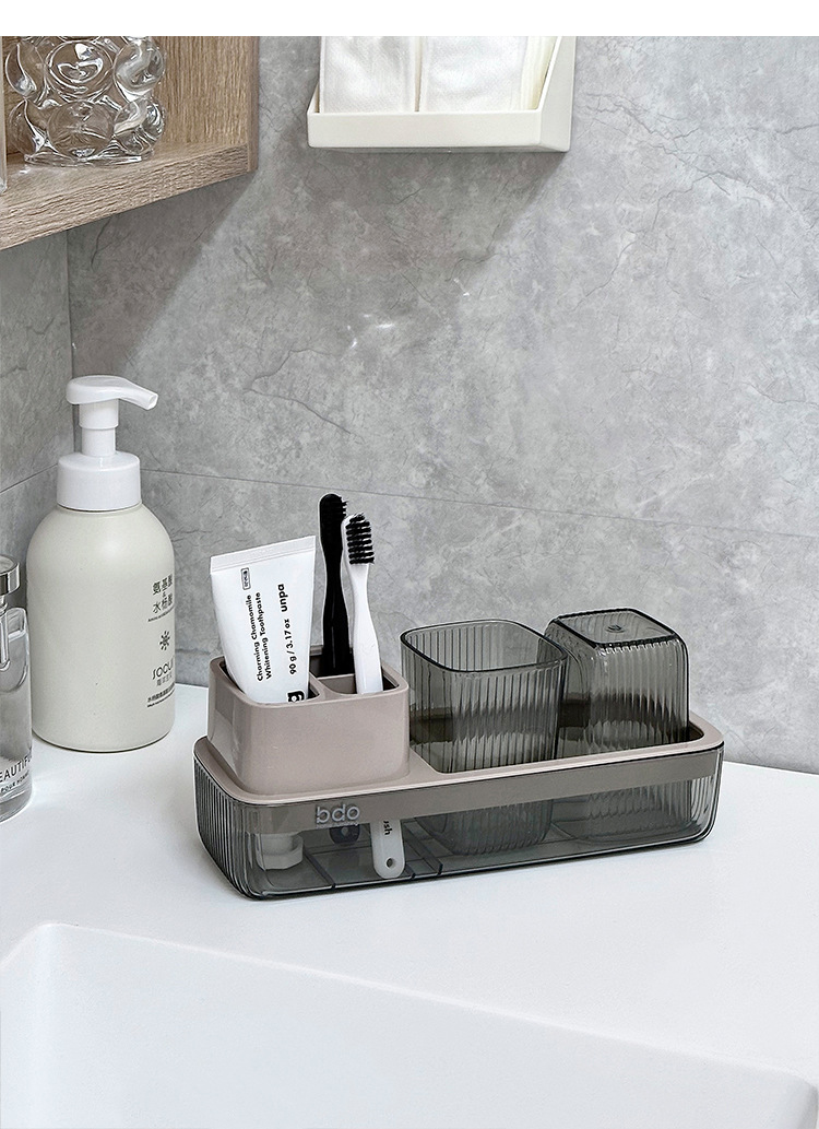 욕실 칫솔 컵 및 칫솔 보관함, 펀치 없는 전동 칫솔 홀더, 다기능 라이트 럭셔리 구강 세정제 컵 홀더