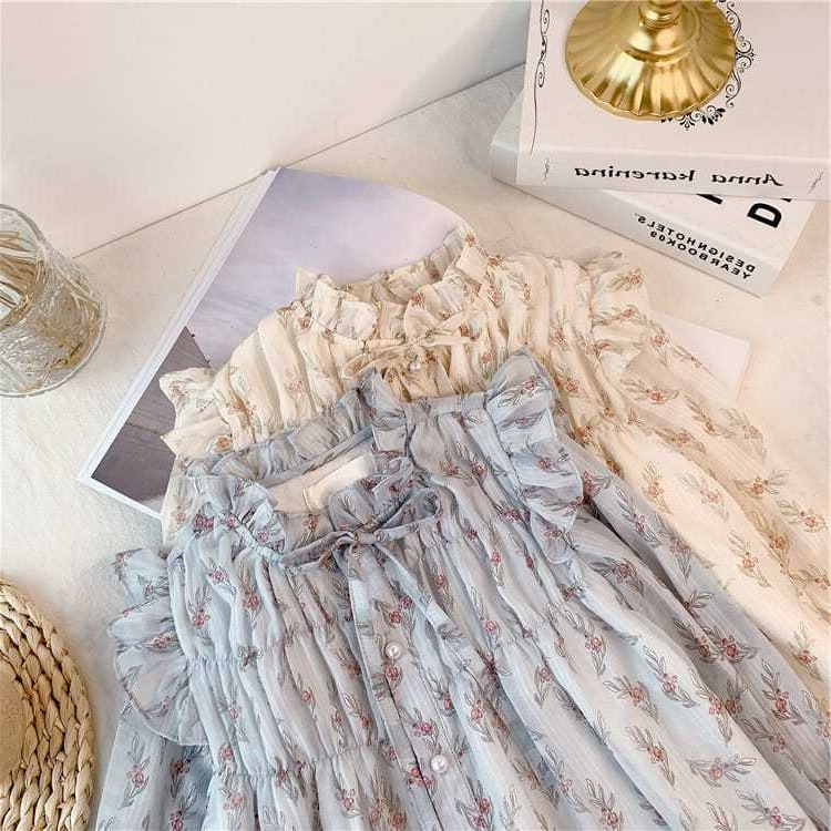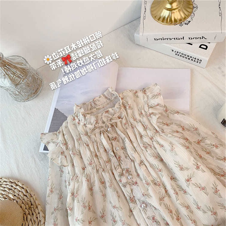 여자 셔츠 봄 2024 새로운 스타일 어린이 긴팔 탑 어린 소녀 셔츠 한국 스타일 꽃 쉬폰 셔츠스토어 가기