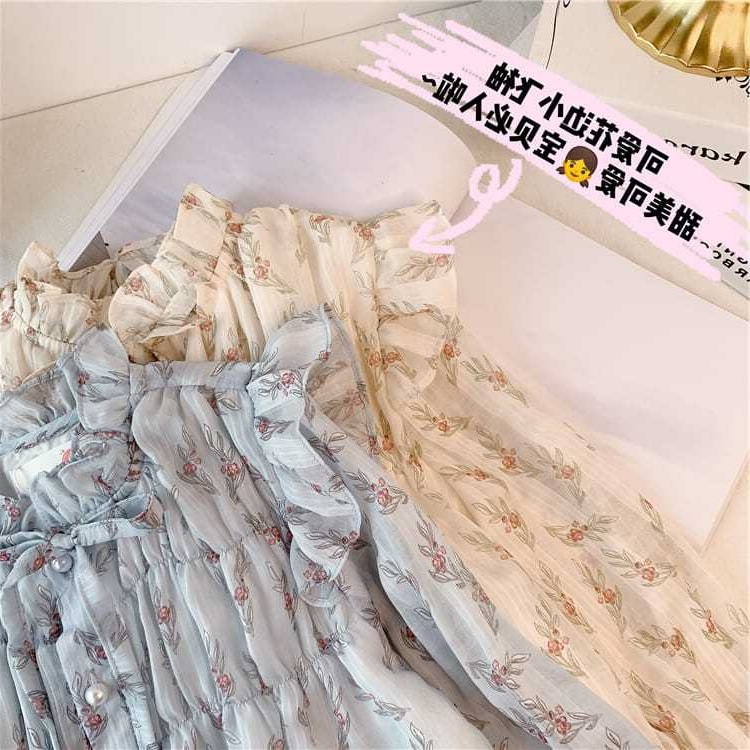 여자 셔츠 봄 2024 새로운 스타일 어린이 긴팔 탑 어린 소녀 셔츠 한국 스타일 꽃 쉬폰 셔츠