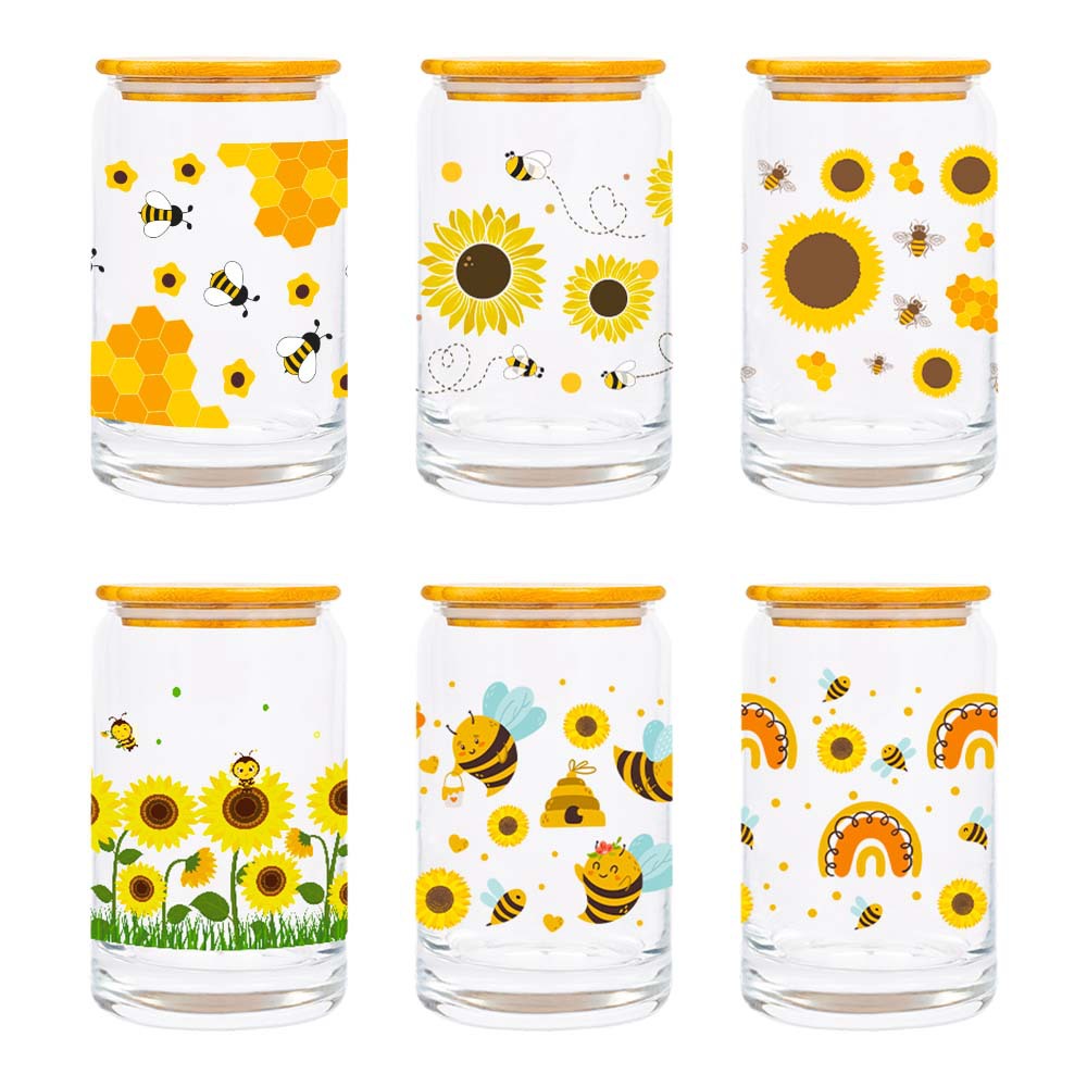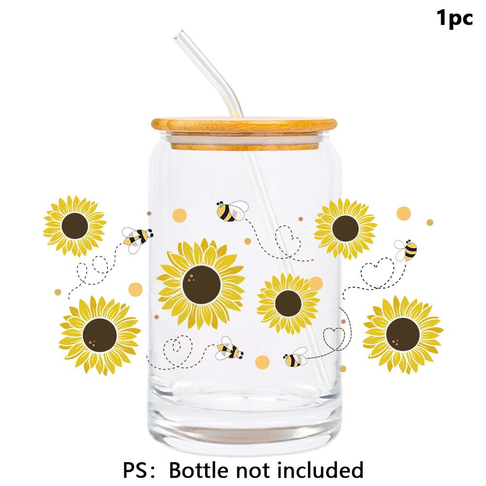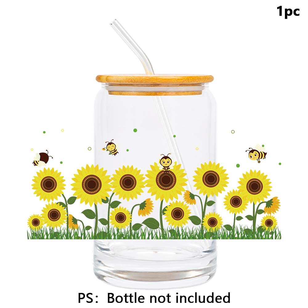 국경 새 해바라기 테마 물 컵 스티커 크리스탈 라벨 장식 장면 꽃 소품 파티 용품스토어 가기