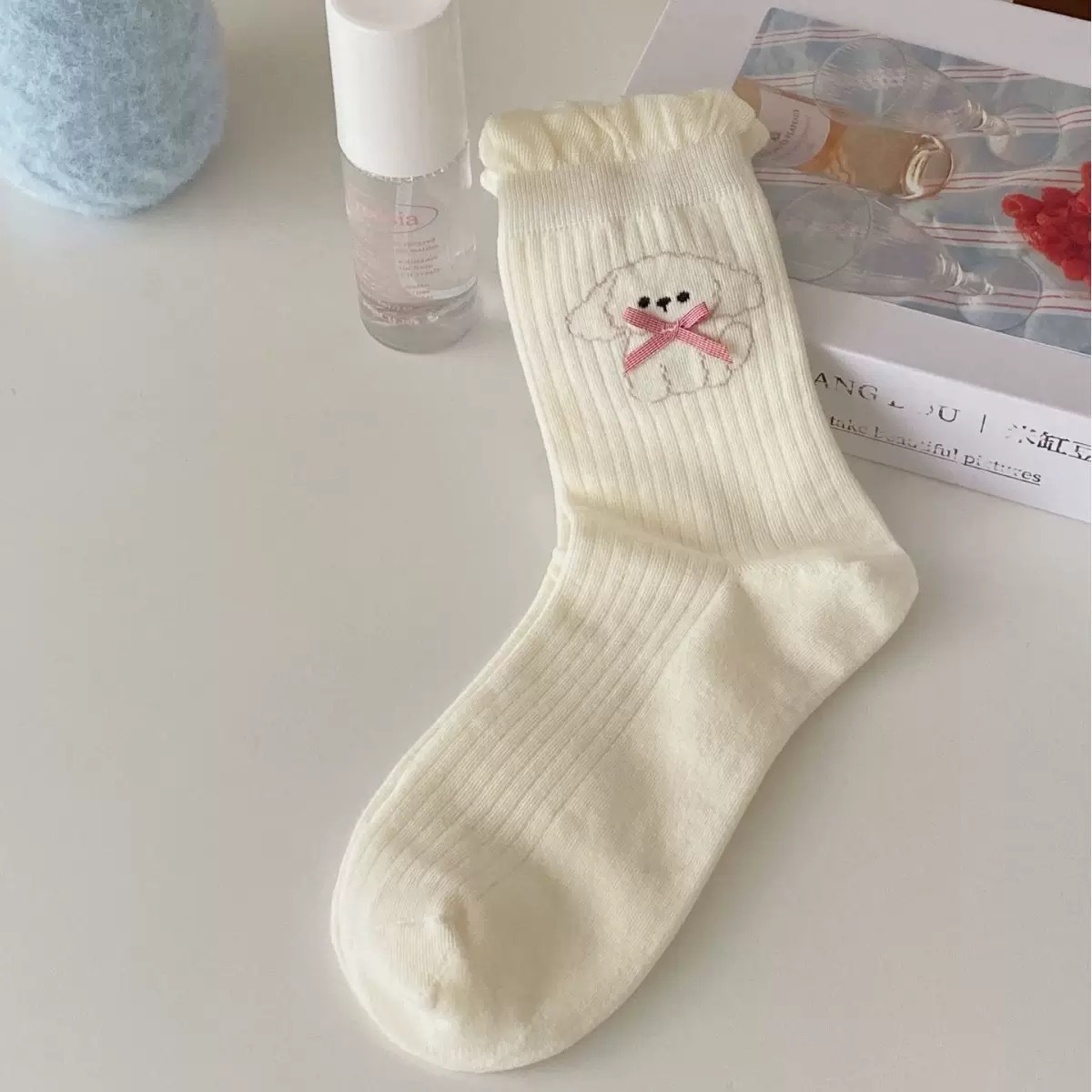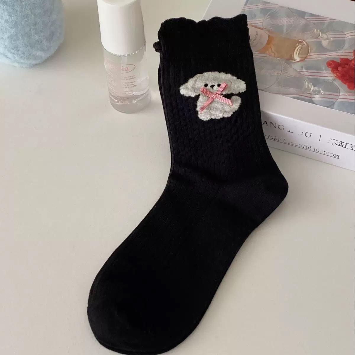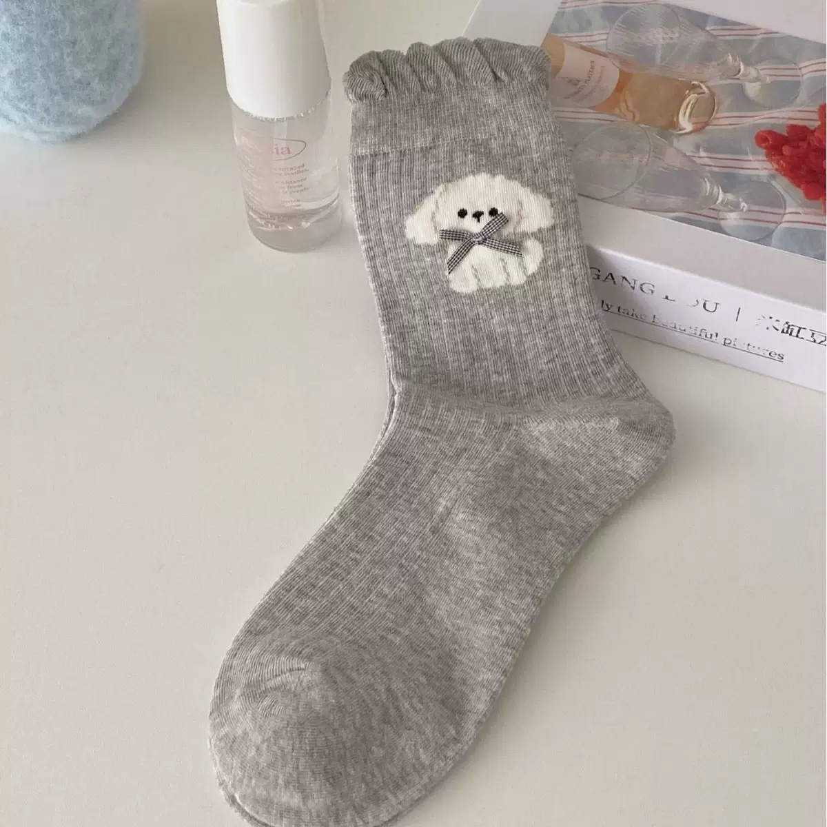 양말 여성 봄과 여름 얇은 중간 튜브 양말 활 강아지 여성 양말 ins 유행 귀여운 만화 양말 발레 스타일