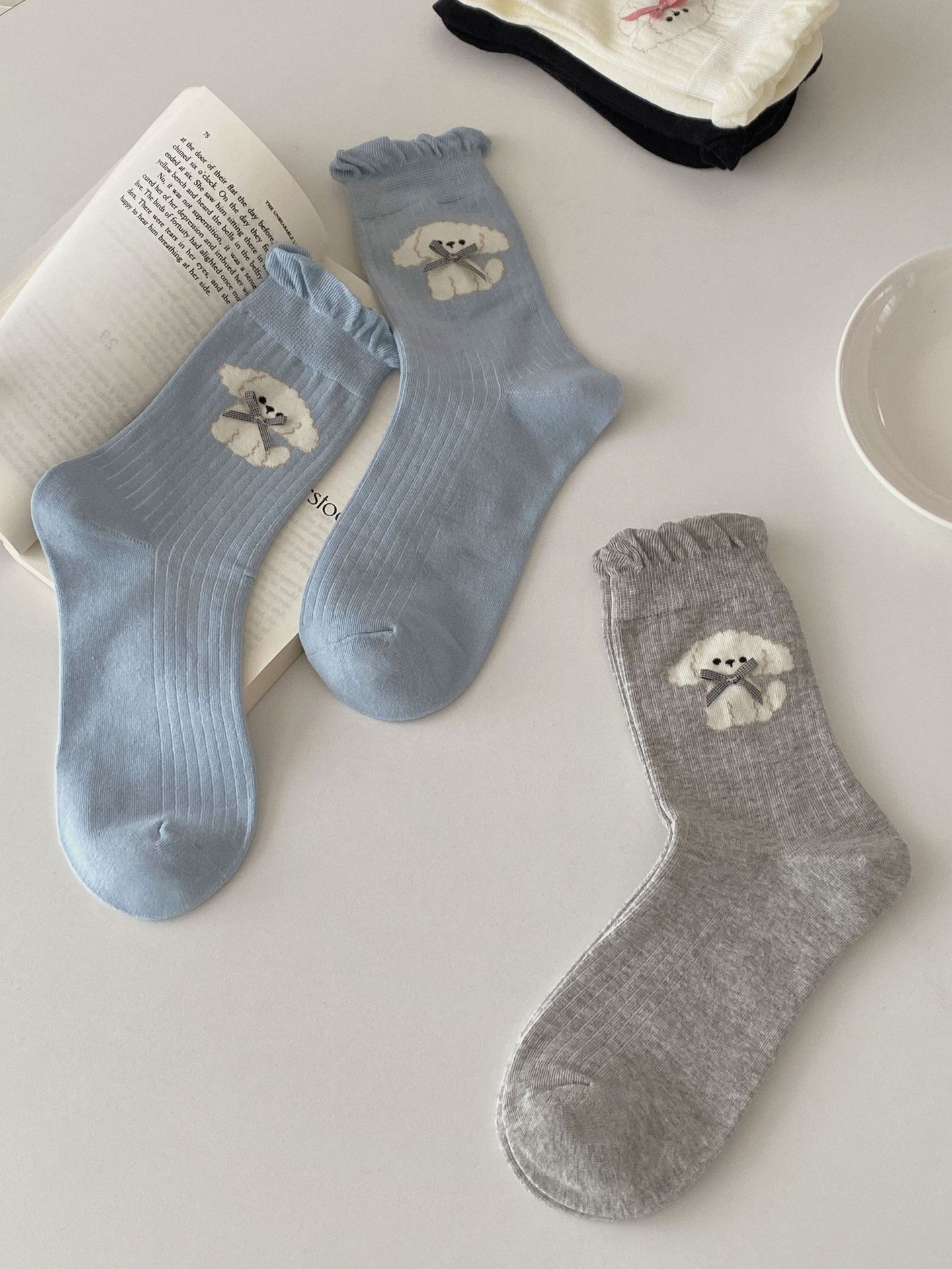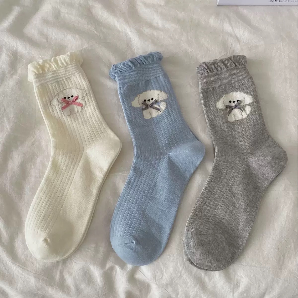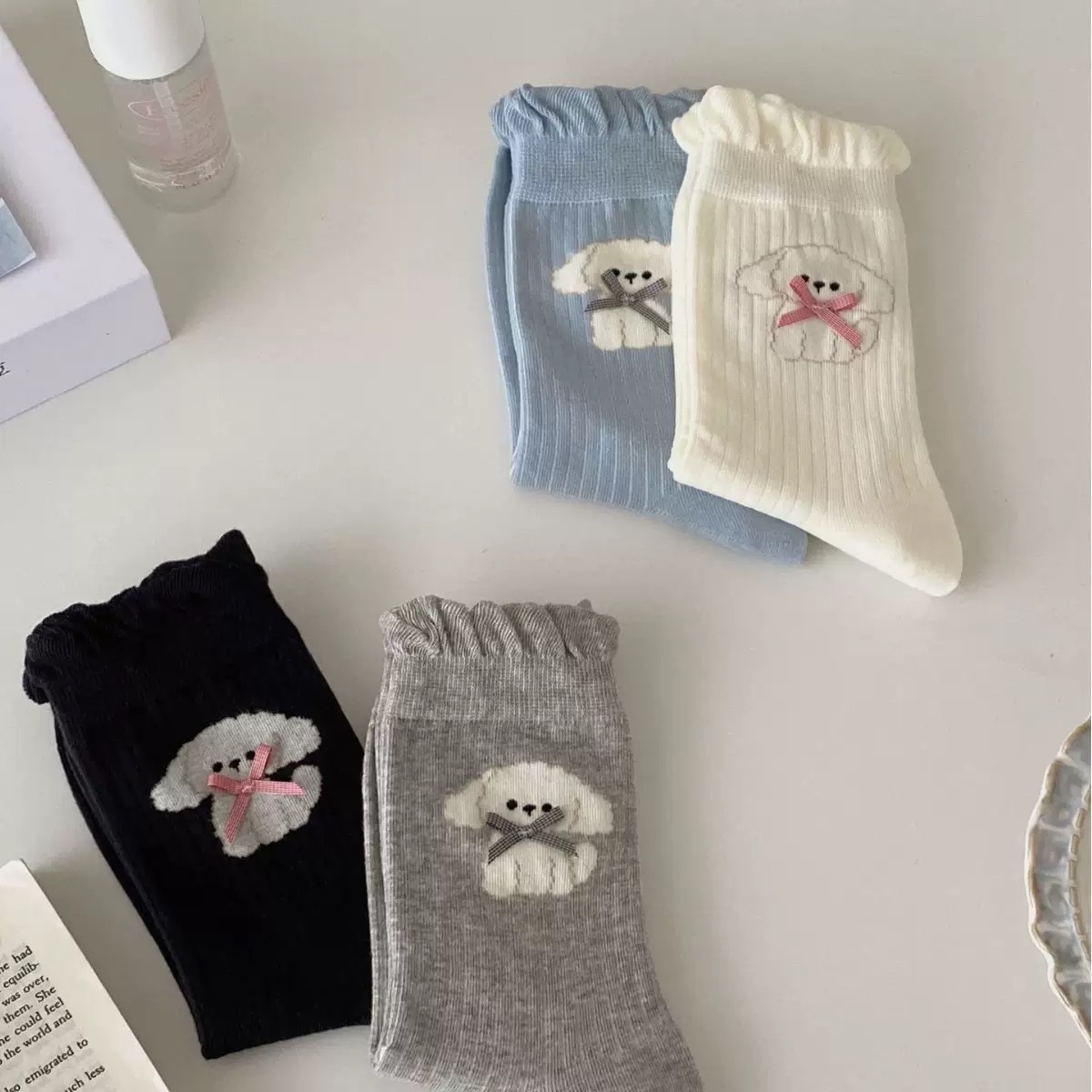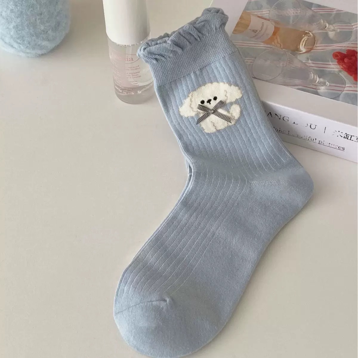 양말 여성 봄과 여름 얇은 중간 튜브 양말 활 강아지 여성 양말 ins 유행 귀여운 만화 양말 발레 스타일