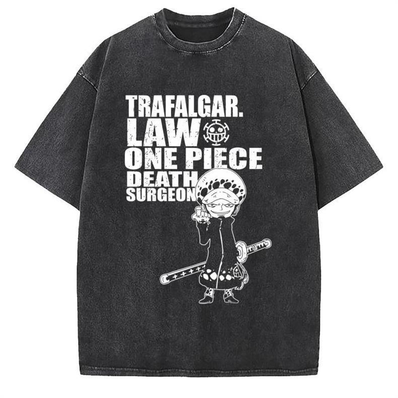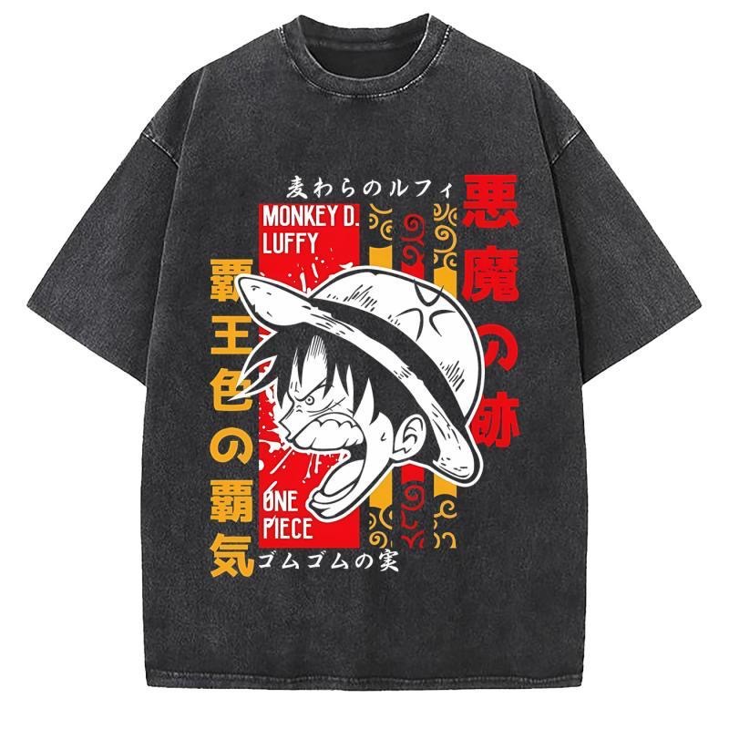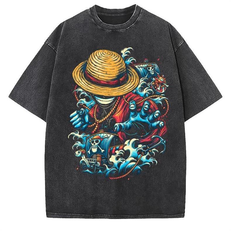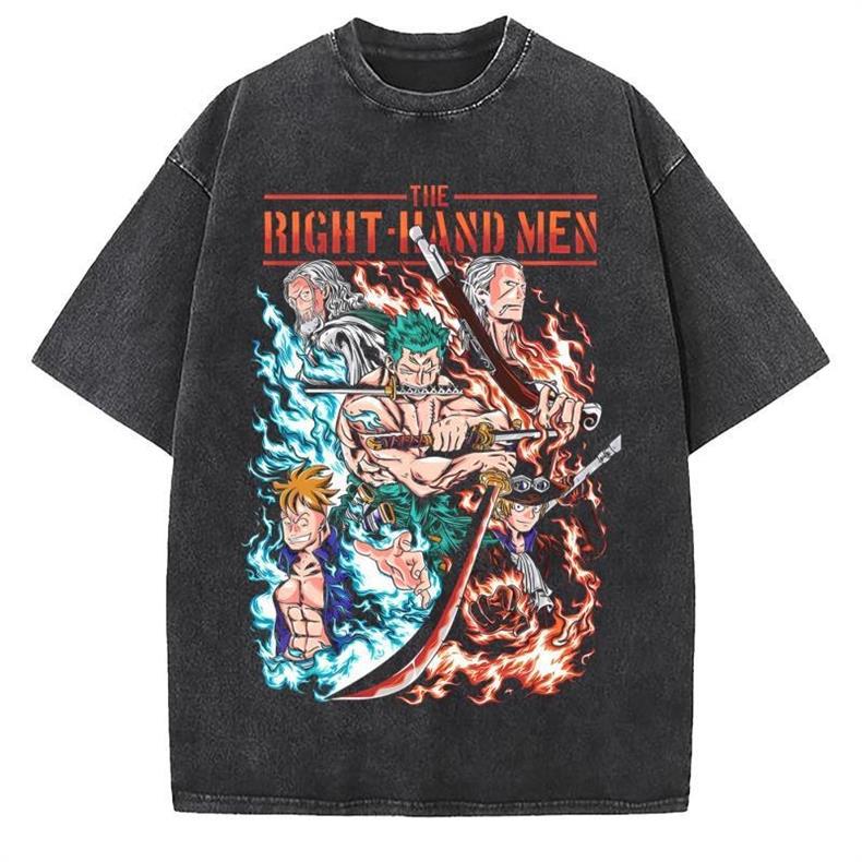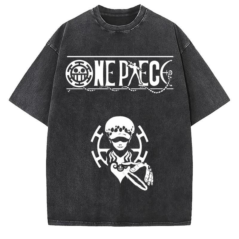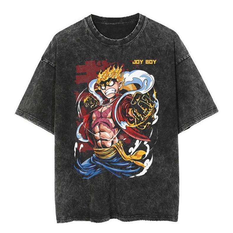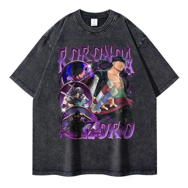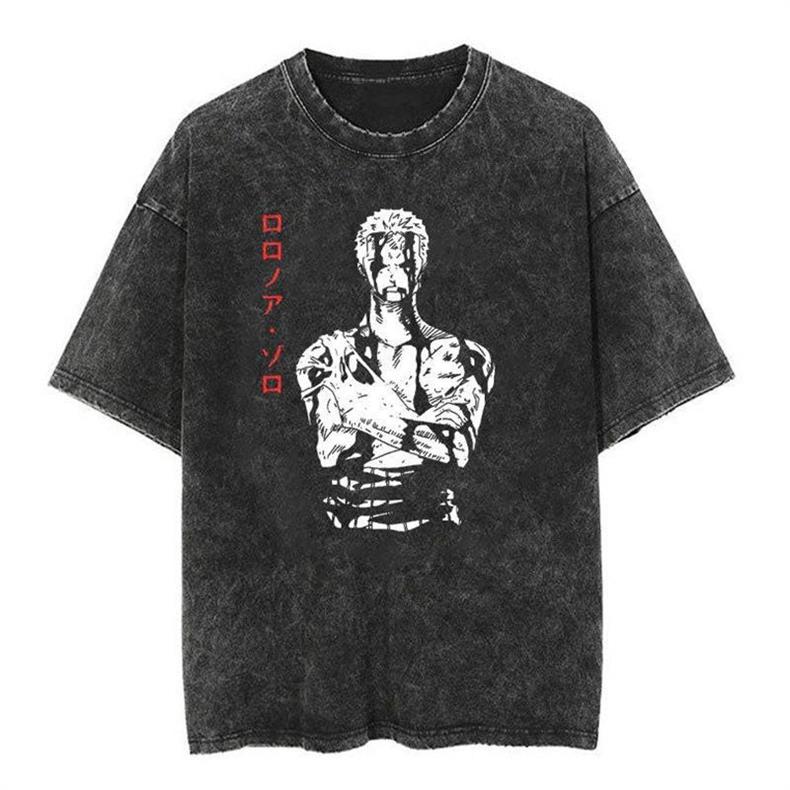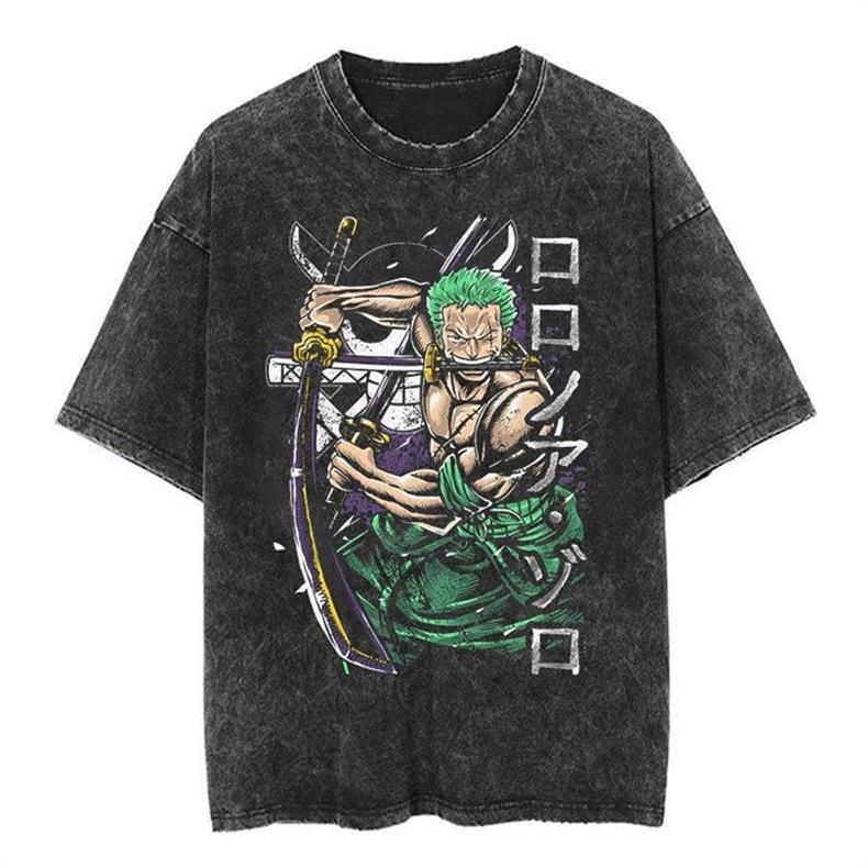 일본 애니메이션 원피스 조로 느슨한 맞춤형 복고풍 크로스보더 스노우플레이크 워시 남성용 반팔 티셔츠