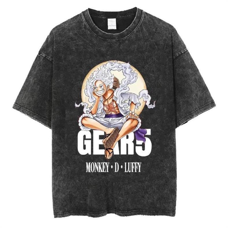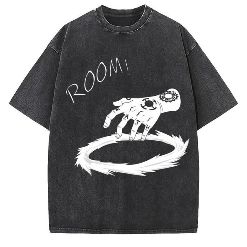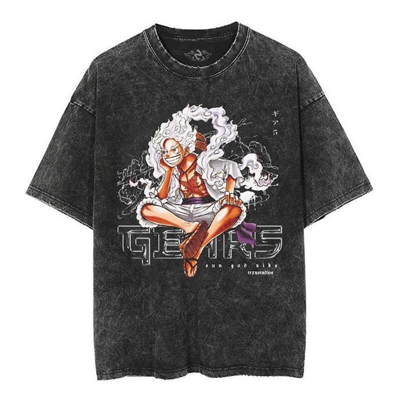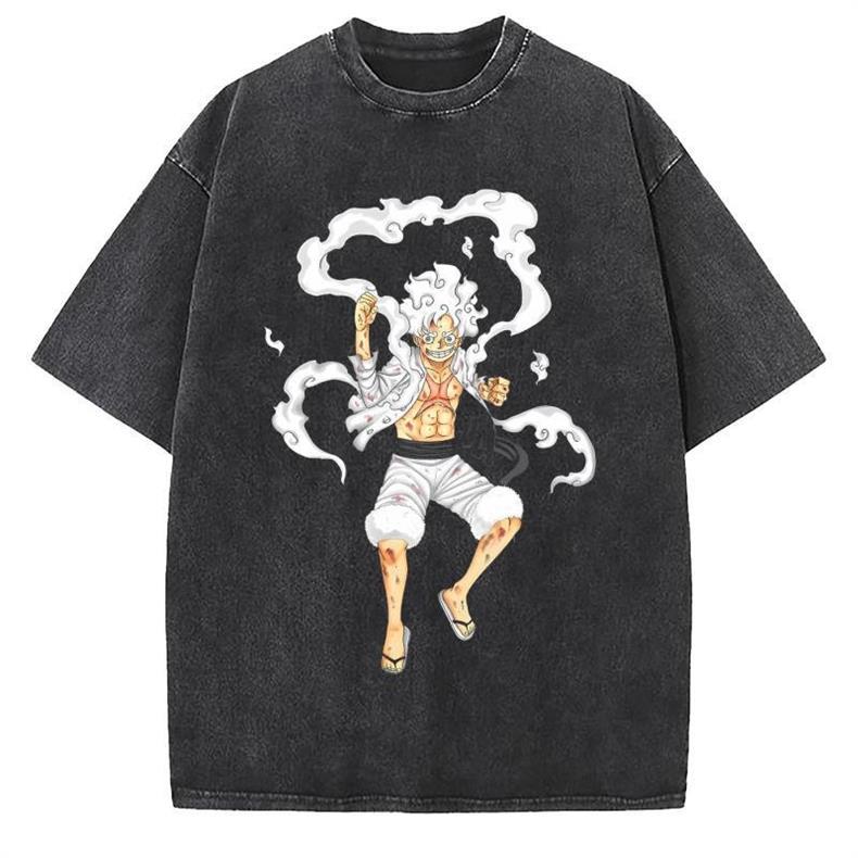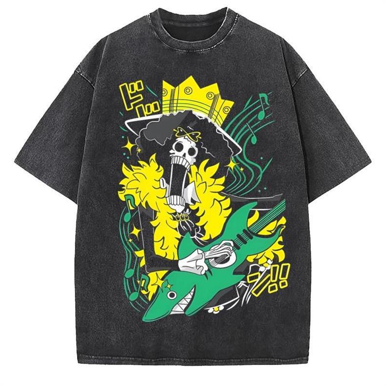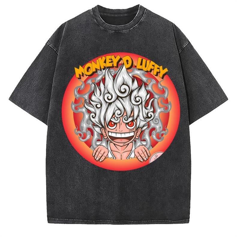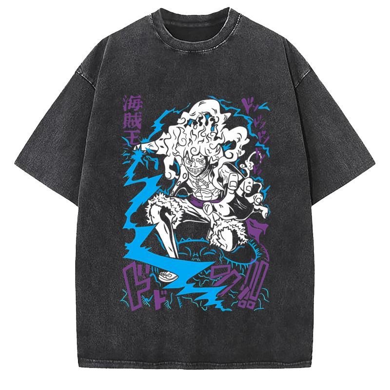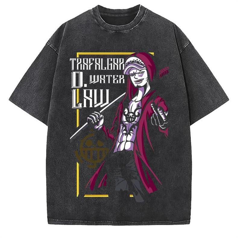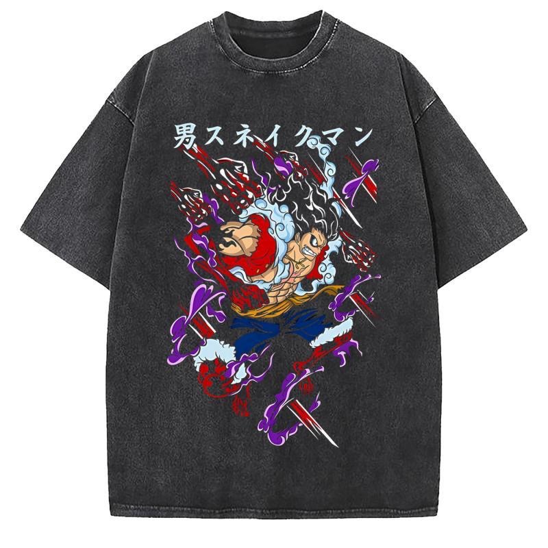 일본 애니메이션 원피스 조로 느슨한 맞춤형 복고풍 크로스보더 스노우플레이크 워시 남성용 반팔 티셔츠