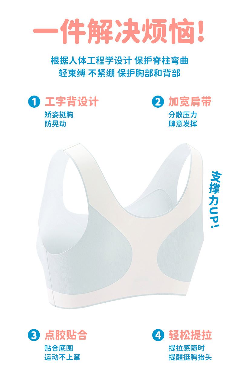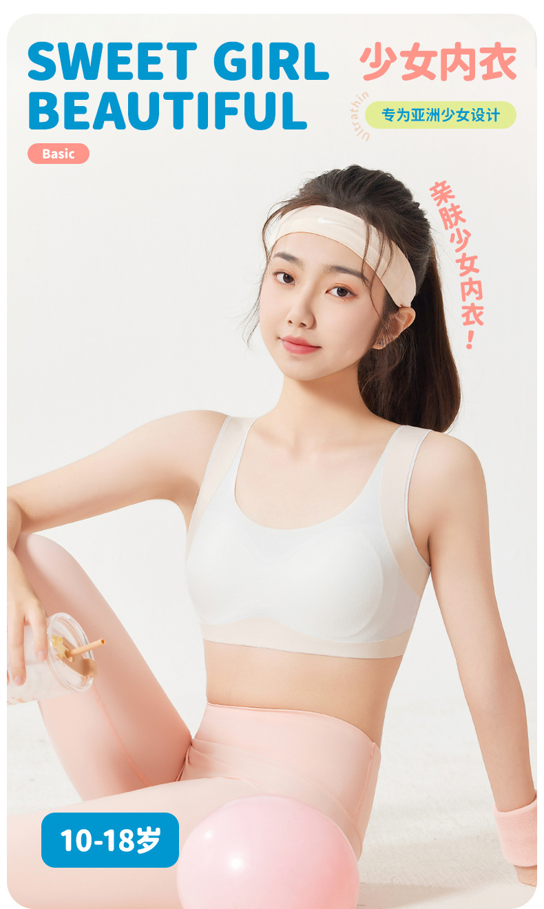 발달기 초중등학생을 위한 스포츠 스타일 심리스 볼록 방지 스포츠 브라 반고정 충격 방지 대비 색상 여아 속옷스토어 가기