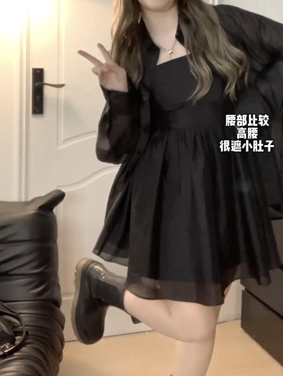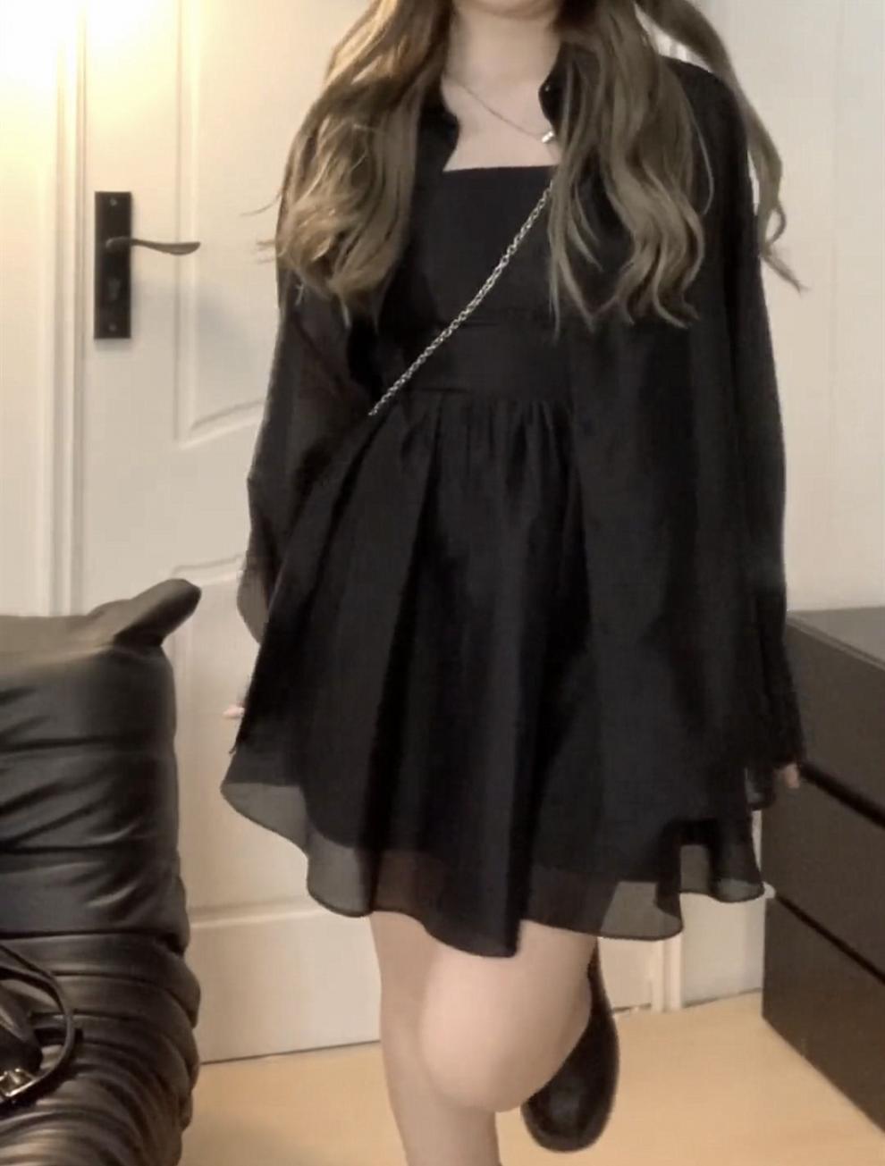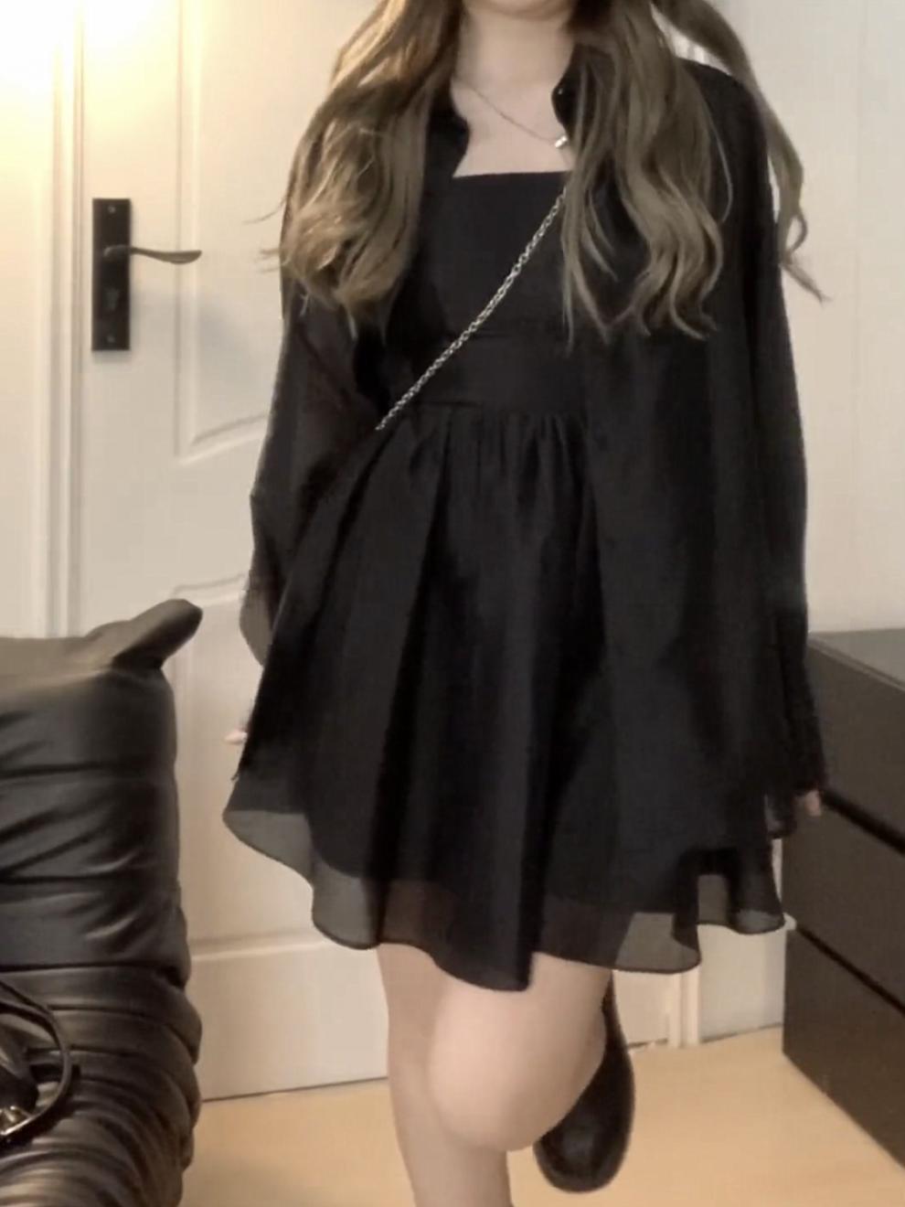 플러스 사이즈 통통한 게으른 패션 세트 봄과 여름 긴 소매 선스크린 셔츠 슬링 스커트 슬림 2 피스 세트스토어 가기