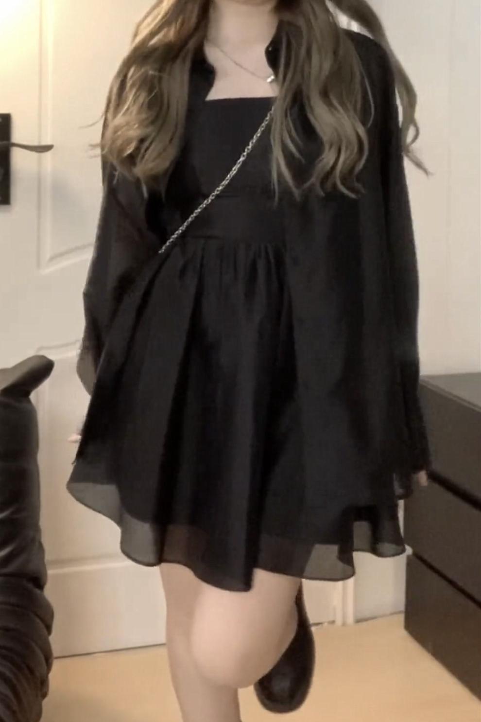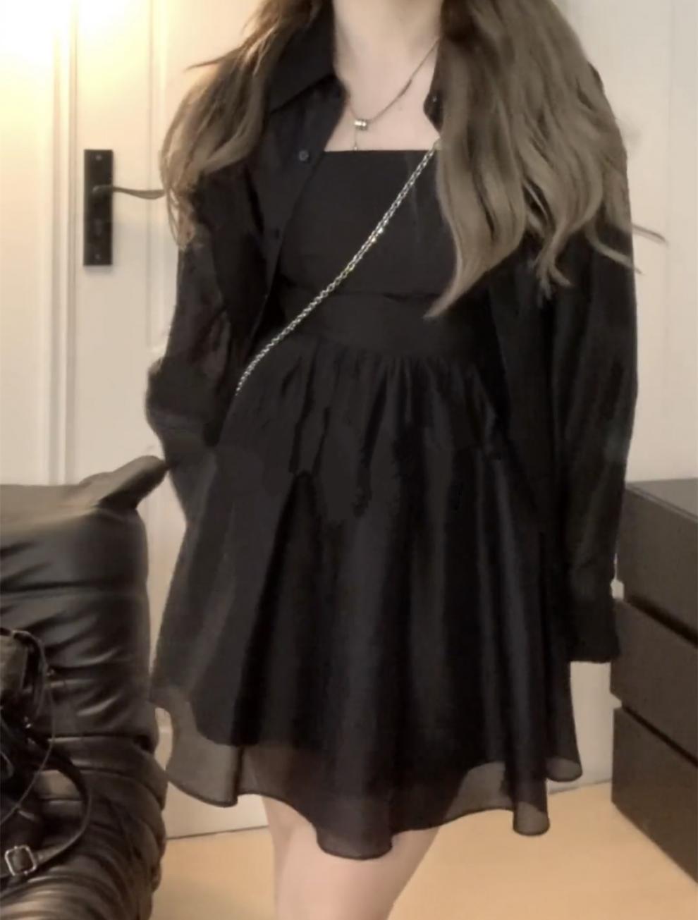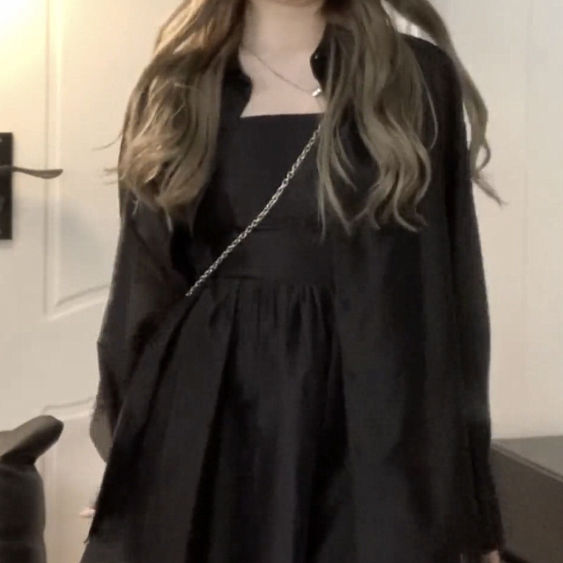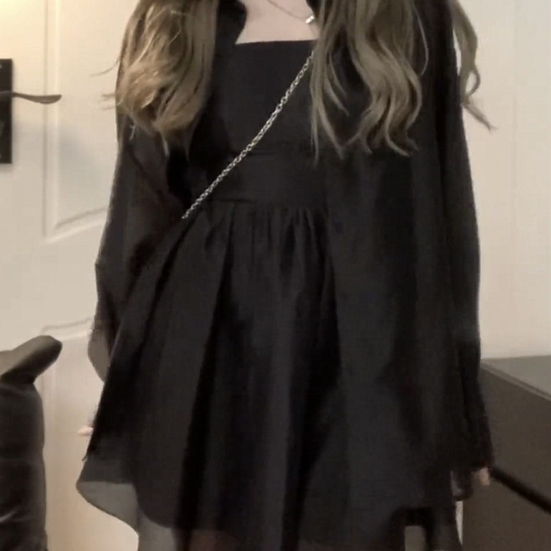 플러스 사이즈 통통한 게으른 패션 세트 봄과 여름 긴 소매 선스크린 셔츠 슬링 스커트 슬림 2 피스 세트