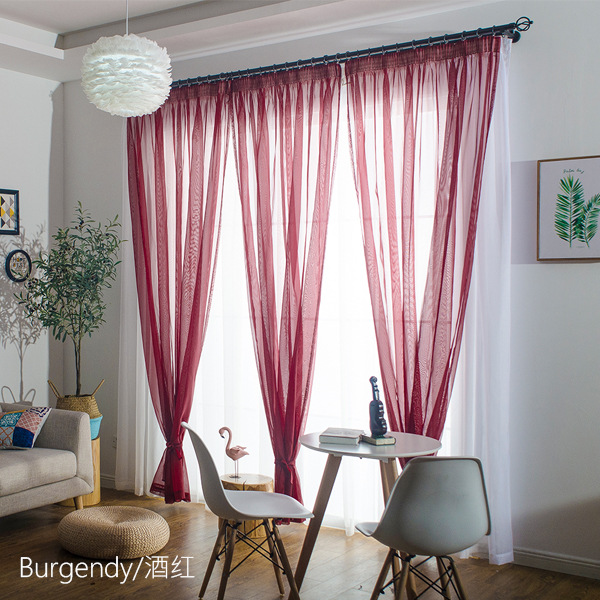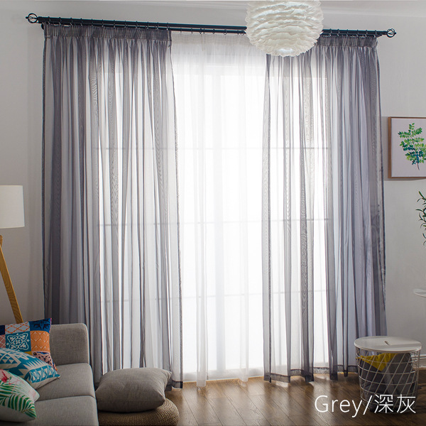 심플한 단색 거즈 커튼, 창문 스크린, 투광 침대 커튼, 거실 발코니 바닥 창, 침실 완제품, 인기 판매